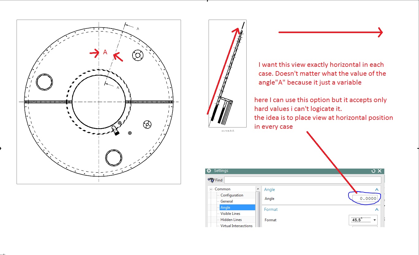 However, you can rotate the section view, as long as you specify that it is ROTATED FOR CLARITY below the SECTION A-A label.