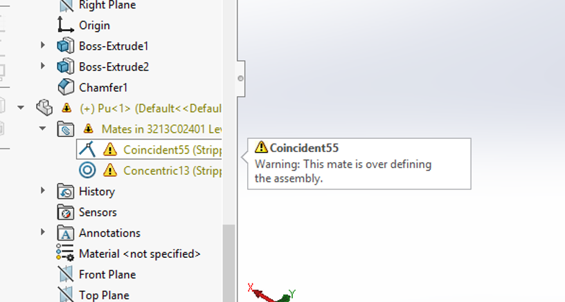 how to rectify the assembly error in solidworks? arul vinu 2 Jun, 2018 09:21 AM how to rectify the assembly error "this mate is overdefining the assembly Picture1.png 1 Answer SolidTweaks Answered on 4 Jun, 2018 08:45 AM Overdefining is using more mates than required. You can delete one of the mates and the problem should sort out.