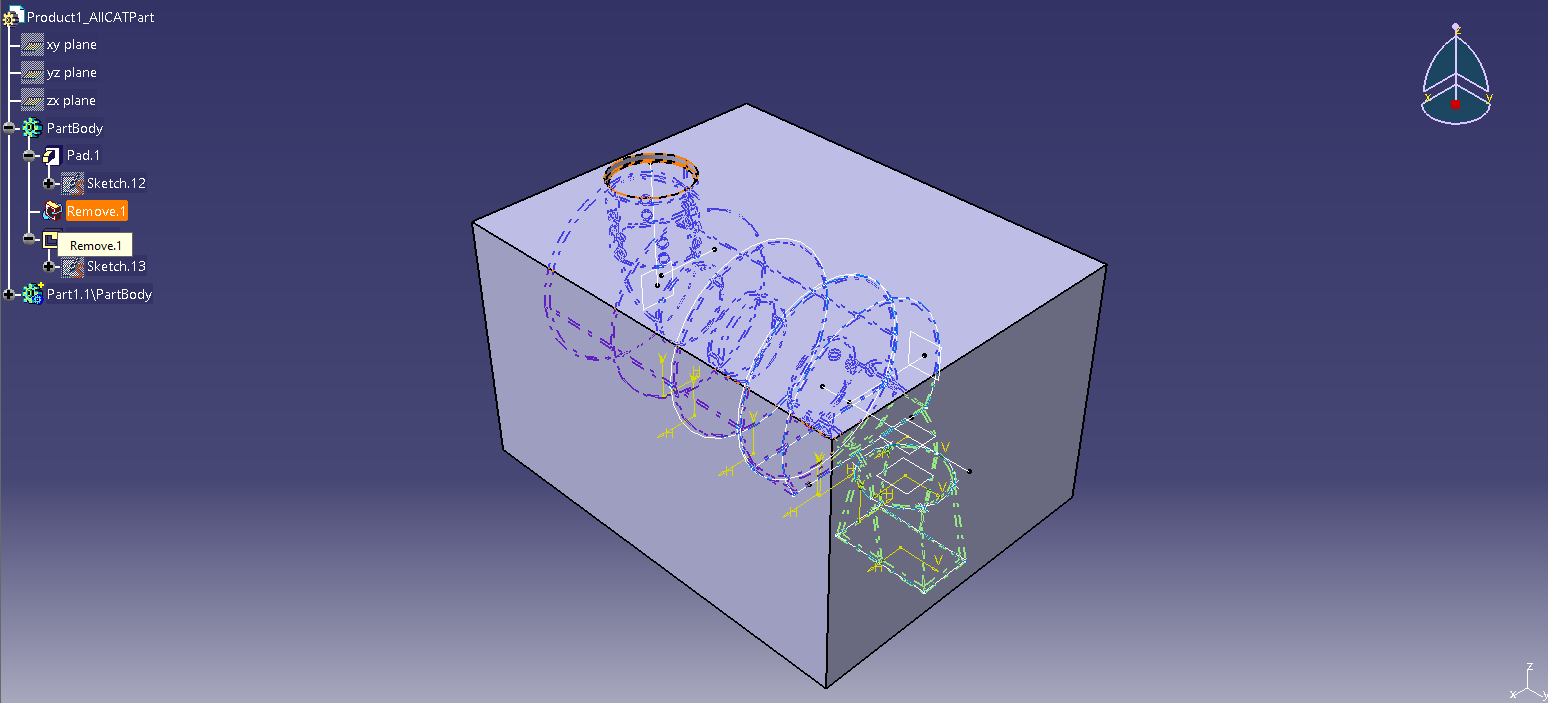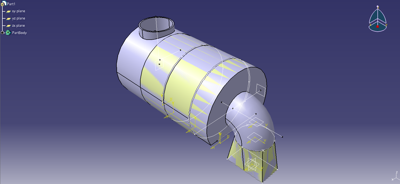 Assuming that picture 1 is the finished muffler, Copy & Paste the PartBody to create a second Body. Hide the PartBody temporarily.