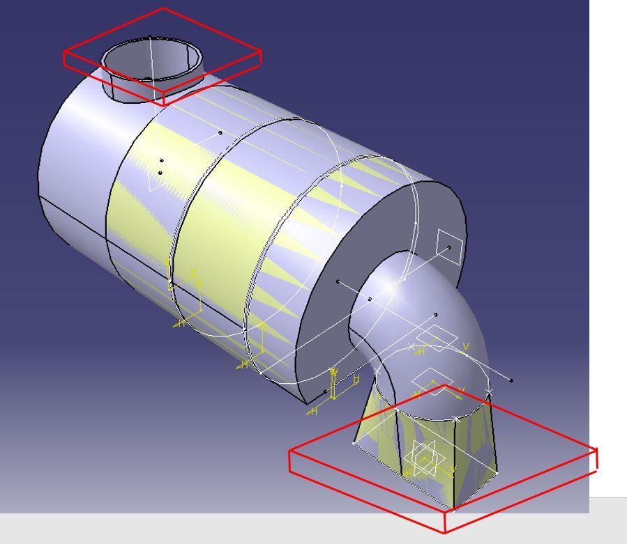 Now, add a Pad on both the input and output ports of the copied muffler so both ports are closed off and airtight. (These pads define where the fluid starts and stops inside the muffler)
