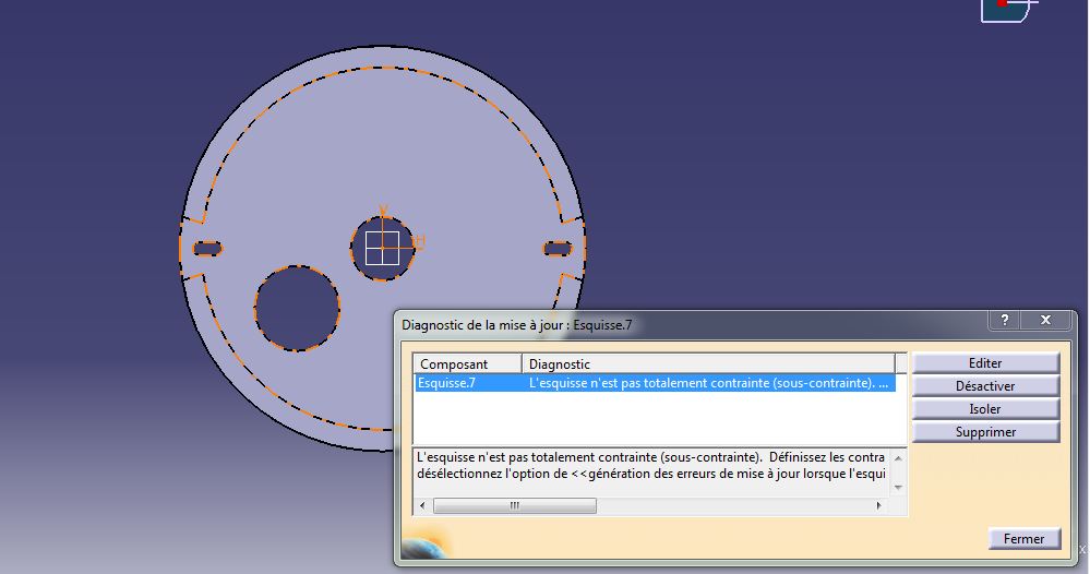 " The sketch is not totally constrained (under constraint). Define the required constraints (click on the change option) or