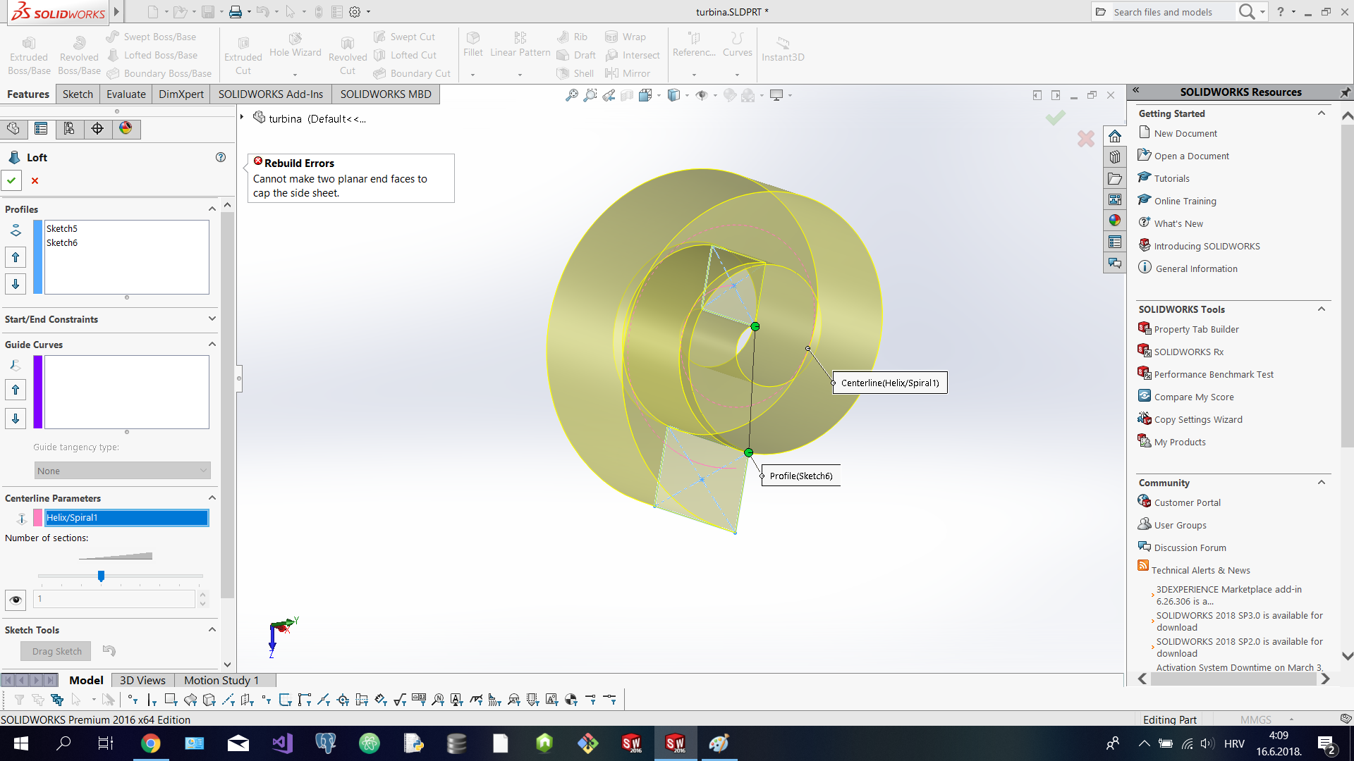 also please note that you have intersection of the two sketches when they follow the spiral as a center line,