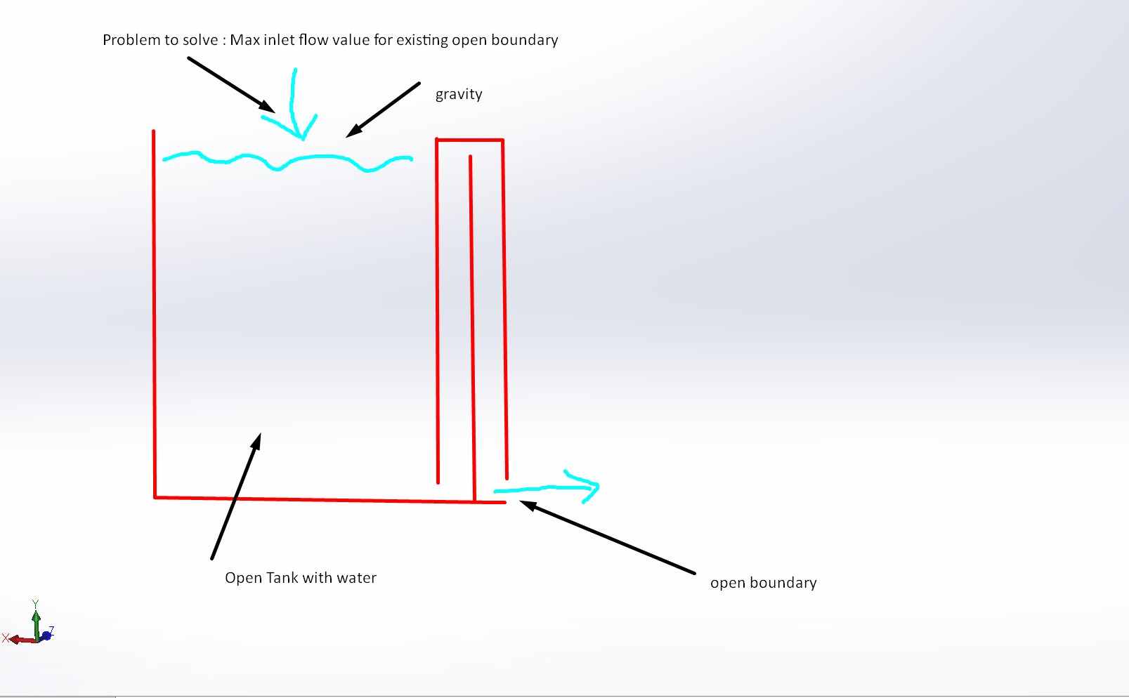 The problem statement can be written as follows: “what is the maximum inlet water flow rate with the existing outlet section and within the model path, with an open discharge.”