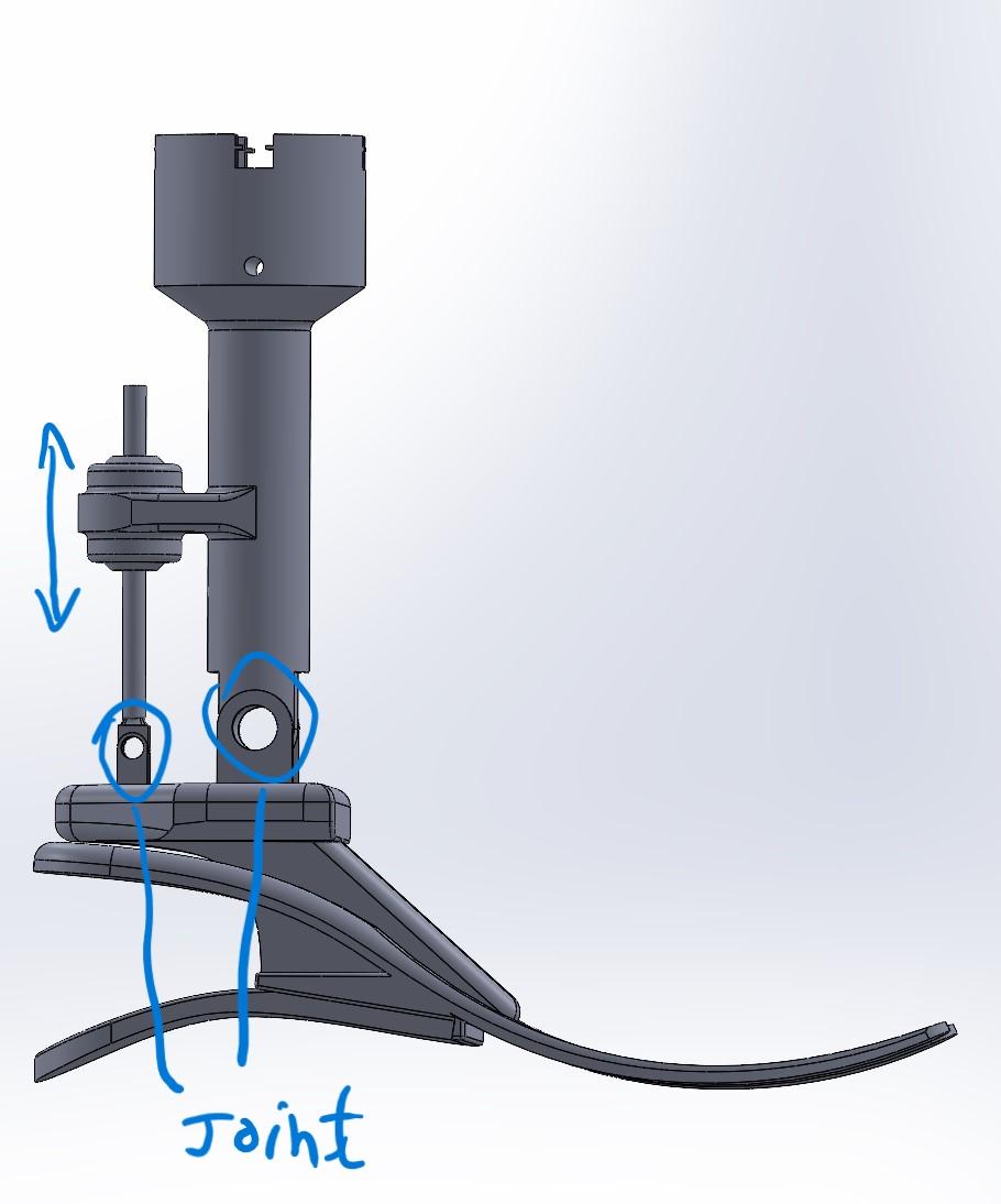 You of course are wanting the ankle to flex and be controlled by the linear actuator. Not only will this not work in Solidworks, this will not work when it’s actually constructed without bending and possibly damaging the linear actuator.