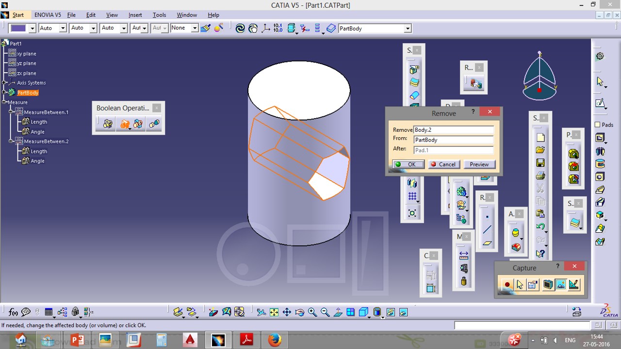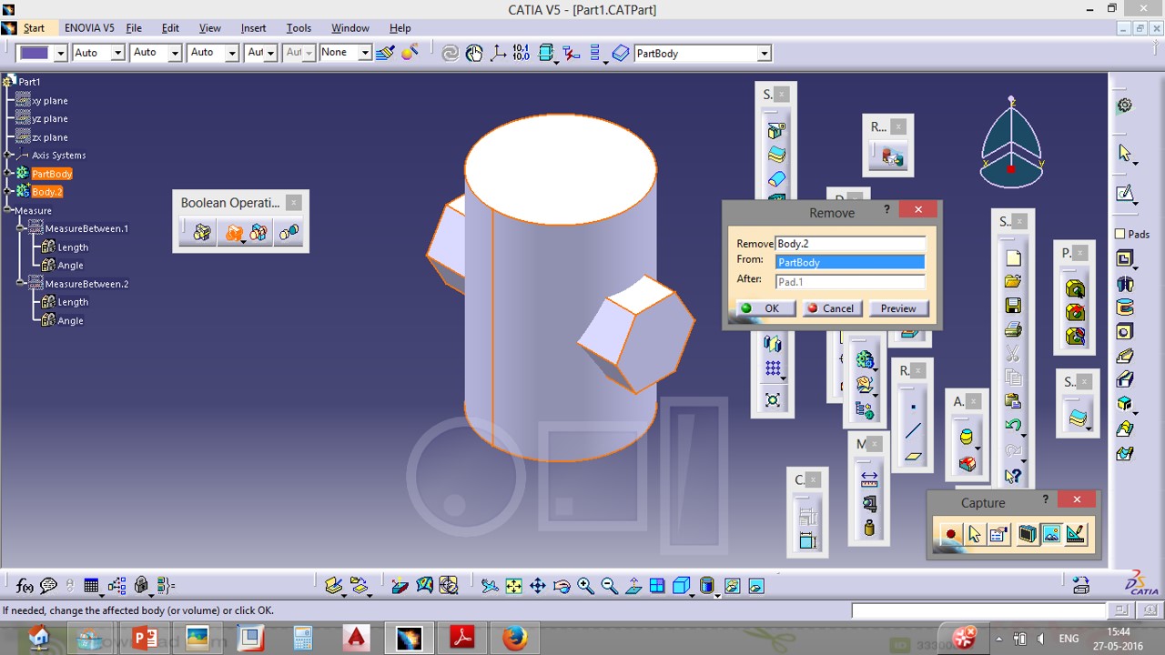 how to use boolean operations in catia