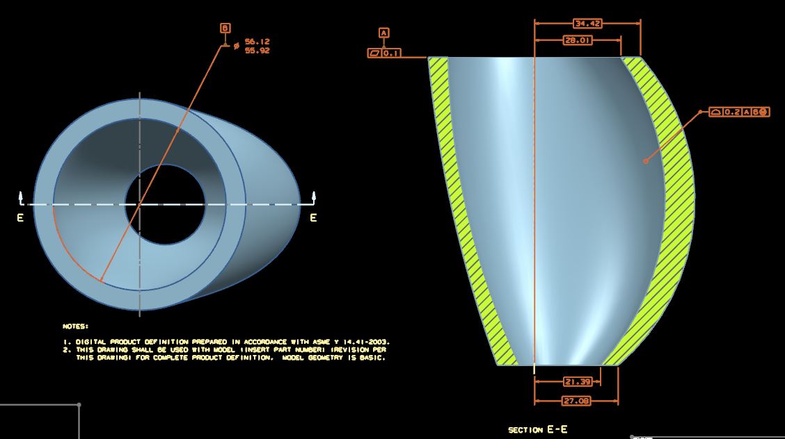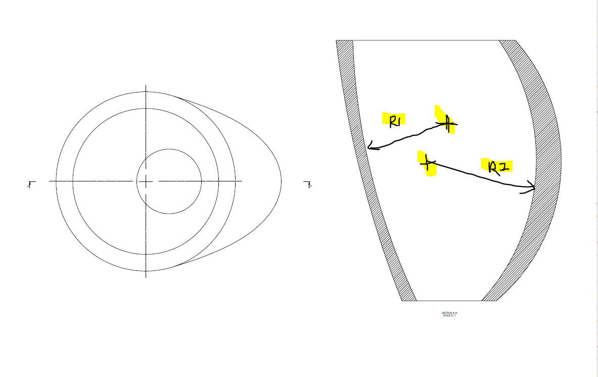 How to use Solidworks Drafting of Asymmetric model generated using Loft feature?