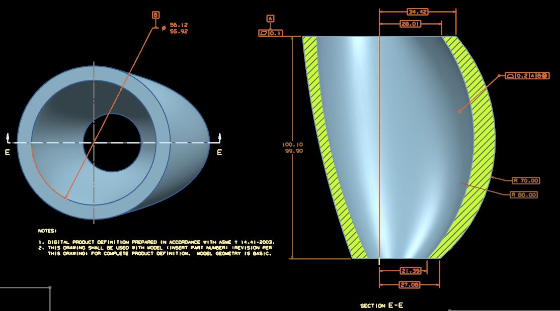 This is the same way we dimension airfoils though, back in the olden times, multiple section views were shown, each with profile control frames. If you feel you need to scan (CMM) at some set increment, then perhaps that would work for you as well. Shooting in the dark as I know nothing of your design intent, but referencing the digital model is perfectly acceptable for these types of situations, so long as the model is toleranced.
