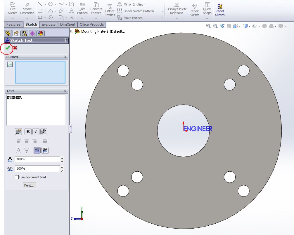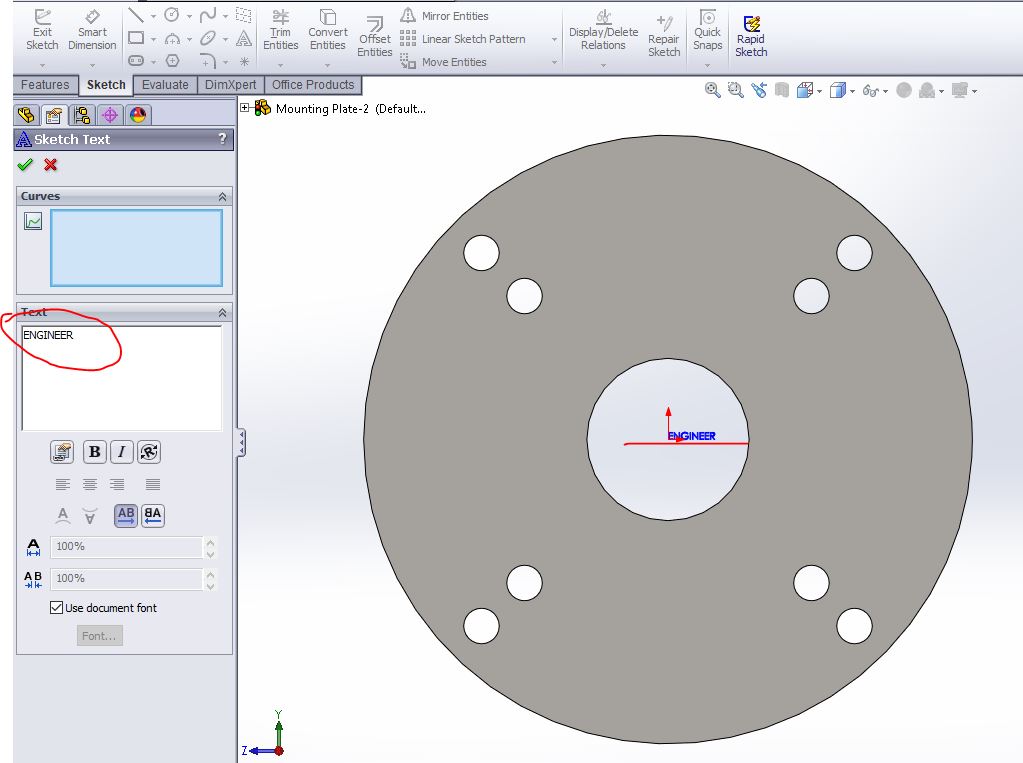 how to write text on solid in solidworks?