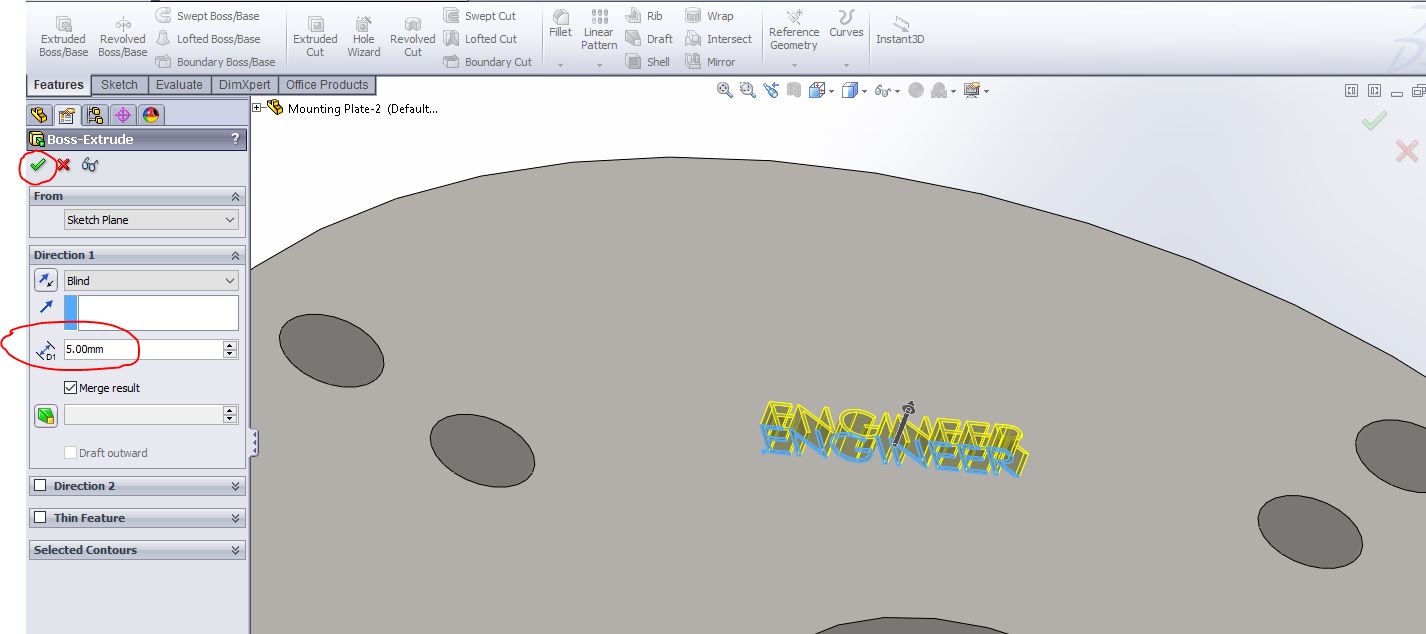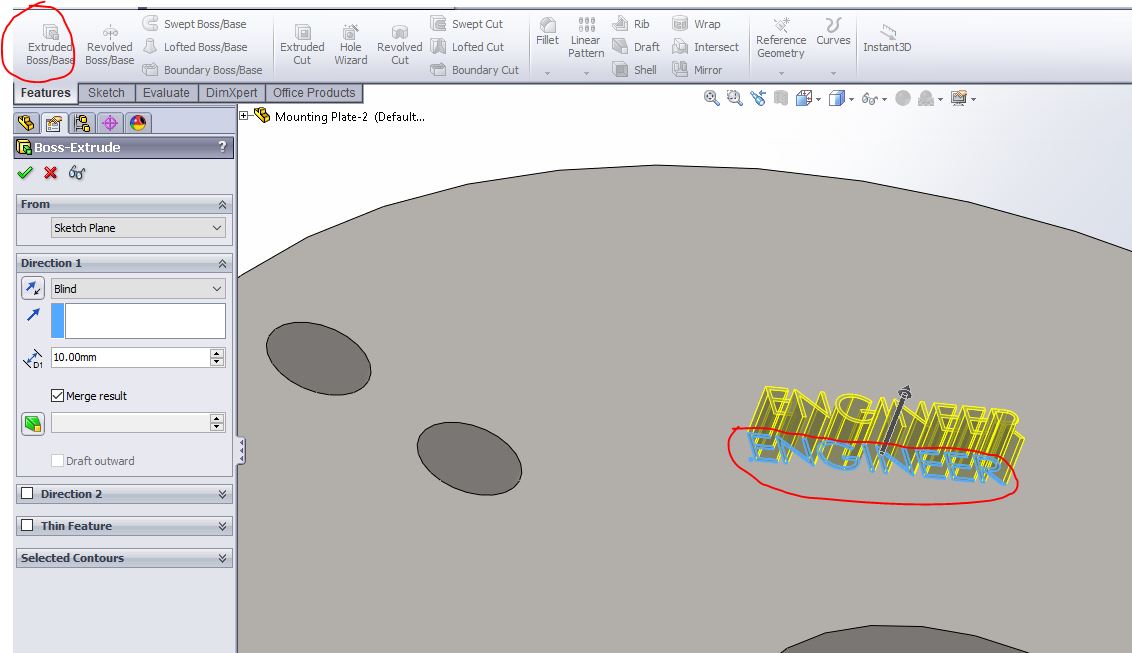 4) now you can choose whether you want to go for cut extrude which will give you engraving or you want to go for extrude boss/ base which will give you embossing.