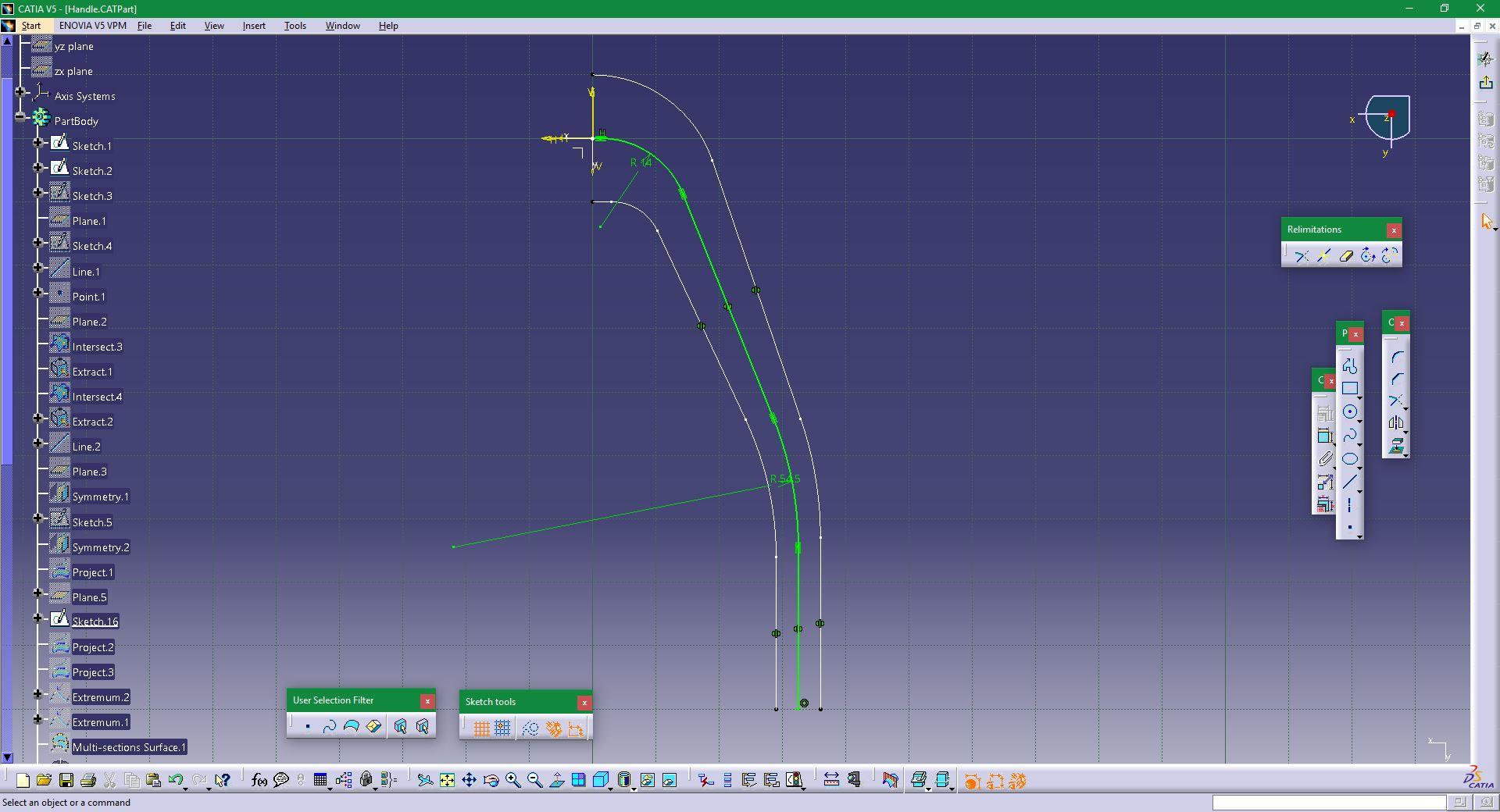 I having problem in designing the handle of the displayed drawing
