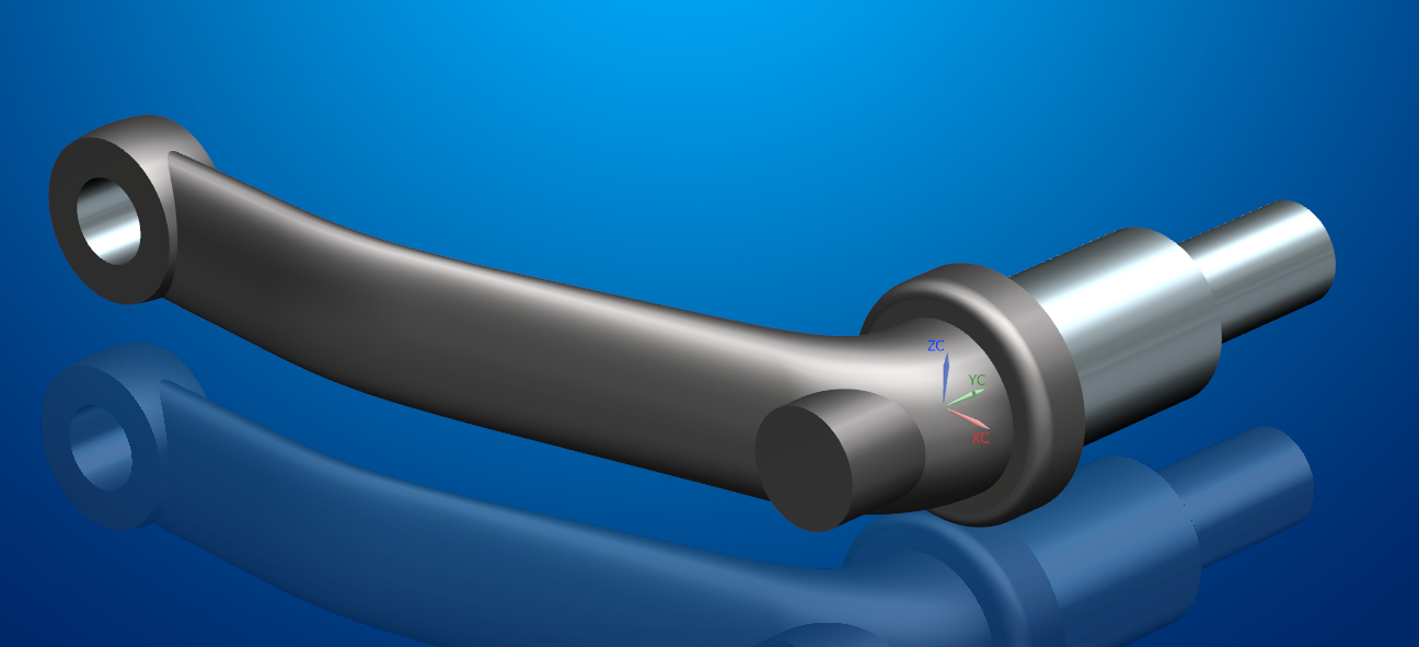 Anyhow, the model builds very similarly in NX, with the swept form being controlled by 2 guides... the 'taper' from 20 mm to 16 mm is driven with lateral scaling. Didn't bother with the hole or keyway.