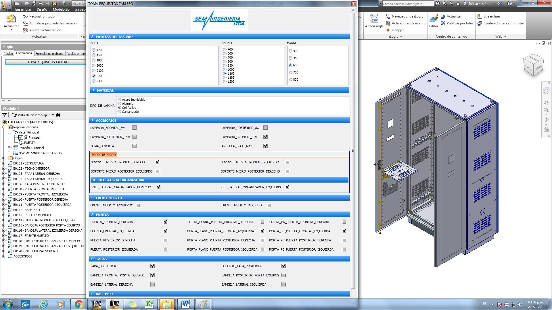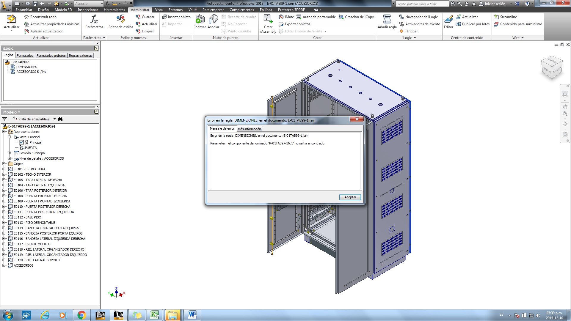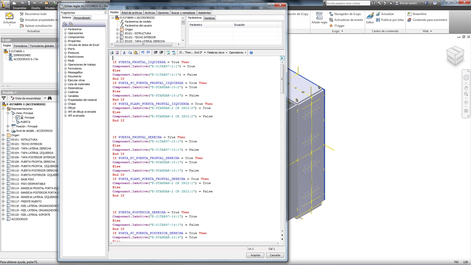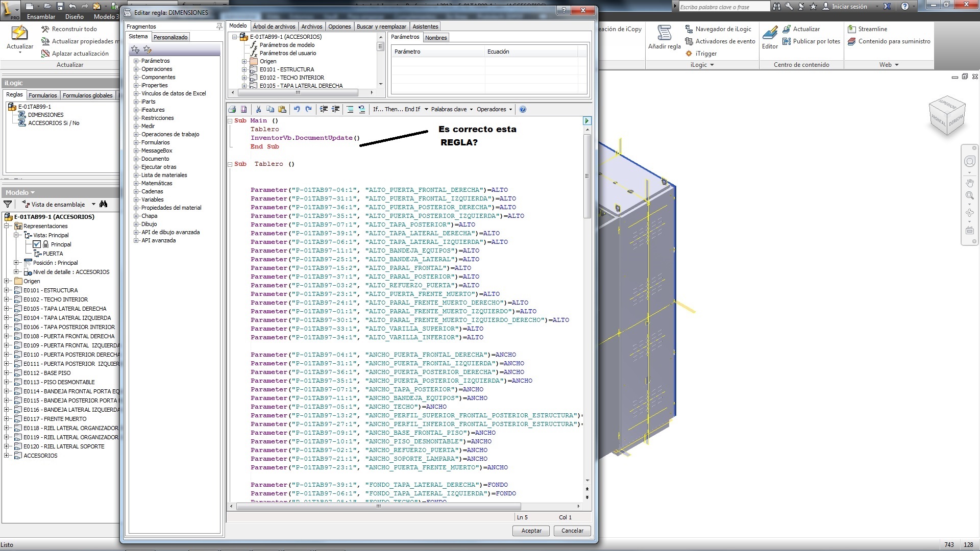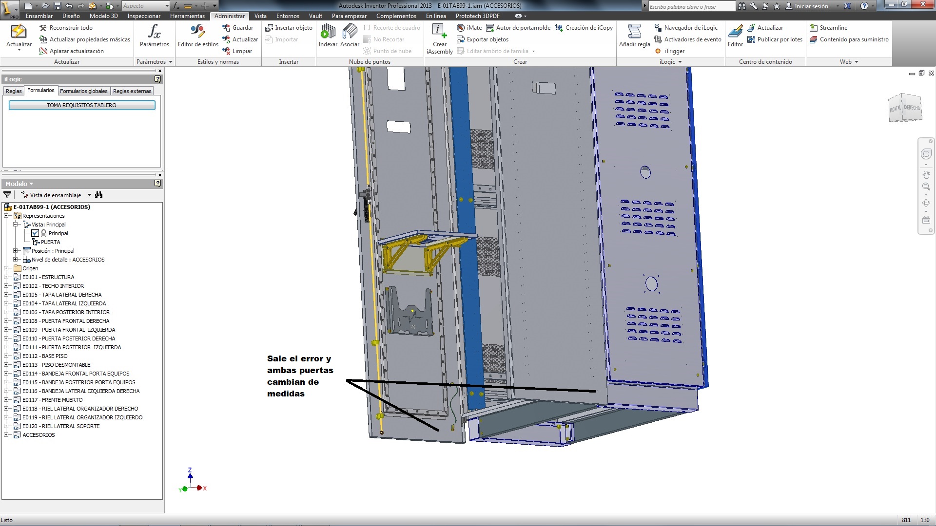 Tengo un gabinete hecho en chapa, con parametros ilogic: