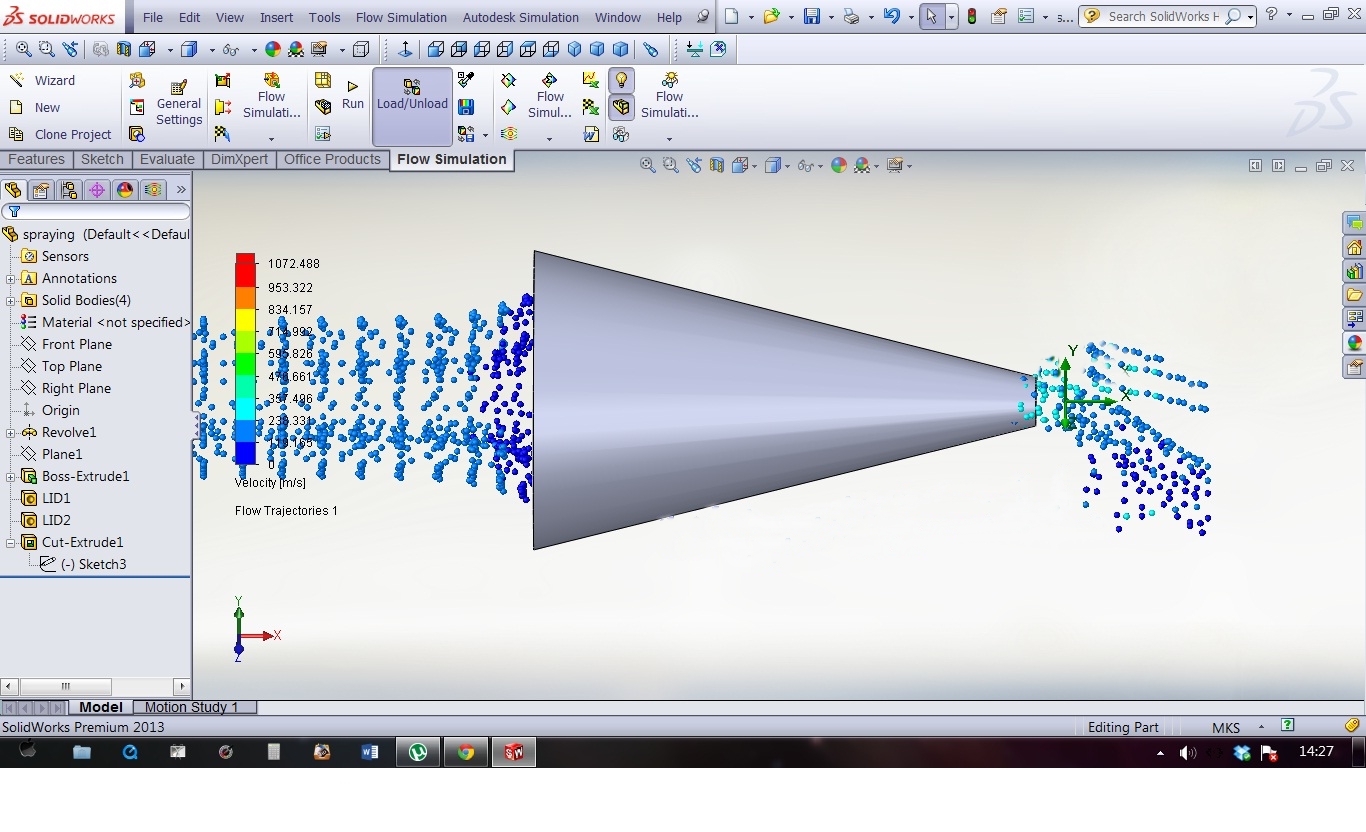 I'm new to FloXpress and Flow Simulation and I'm trying to simulated the spraying pattern (full cone) of a spray tip, but I've to add lids for in- and outlet, so I can't see the spraying pattern and that's the most important. I can only see the liquid flow inside the nozzle. Is't possible to simulate a water spurt completely through my model and see the outcome; the spraying pattern?