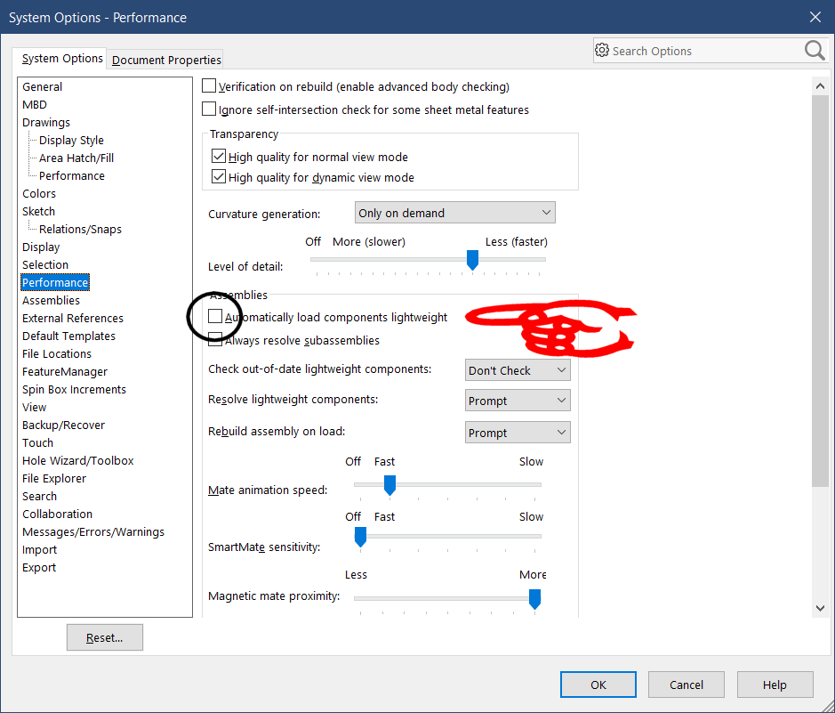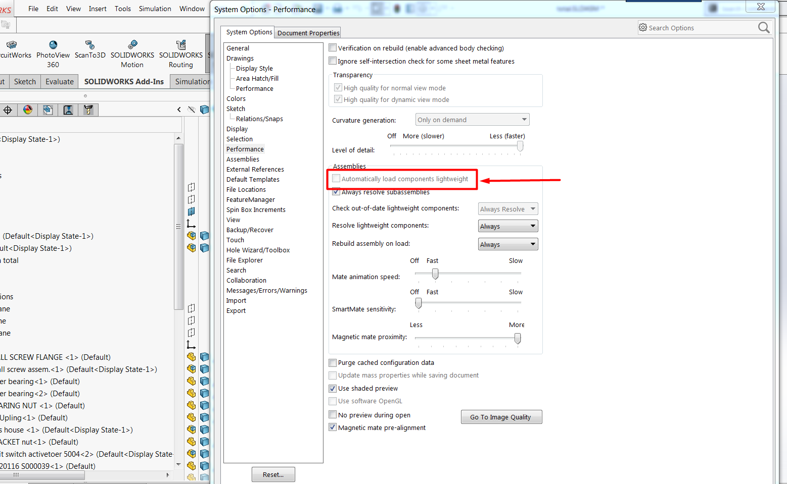 When I tried to open an large assembly in solid-works it gives me warning that the assembly can’t open because of lightweight parts... can any one help me solving this problem?