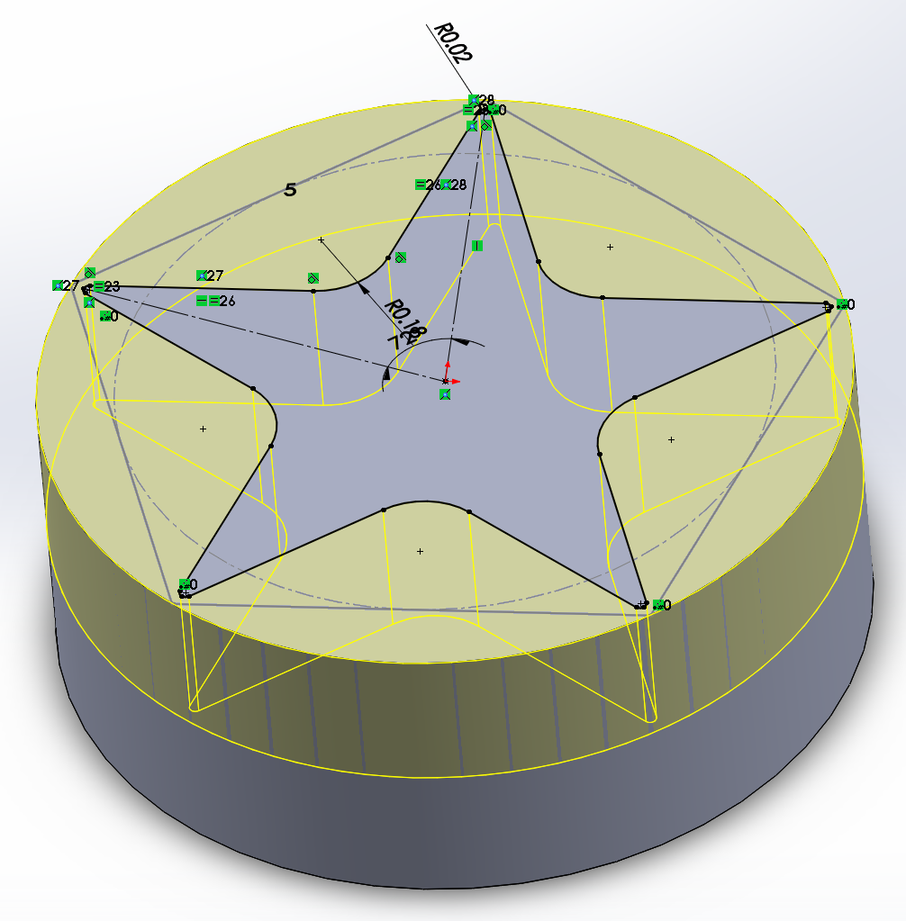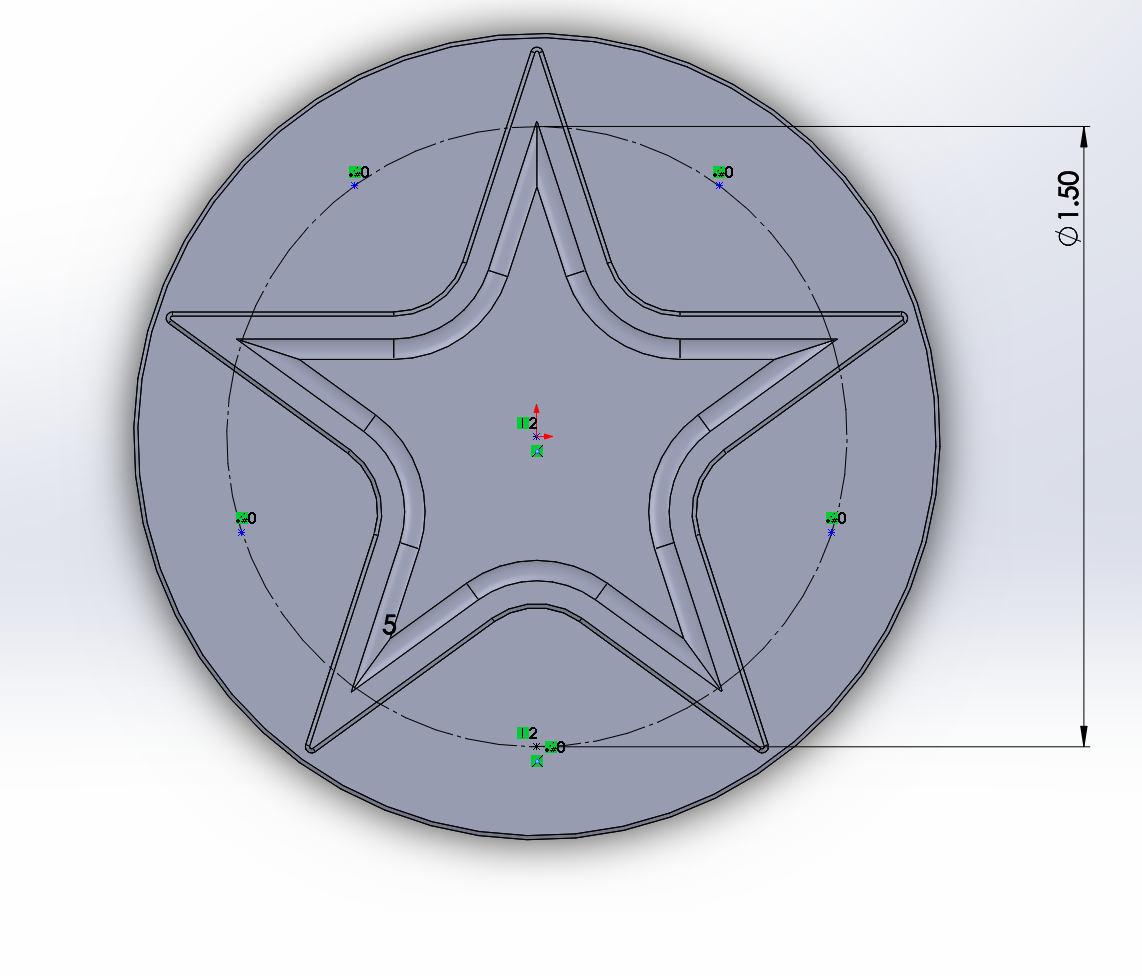 Can someone make this part in Solidworks 2015 format or lower and upload it? I can easily make this part's geometry but the blueprint is confusing me a little. Such as how far should the tip of the star be away from the circle and the engrave part.