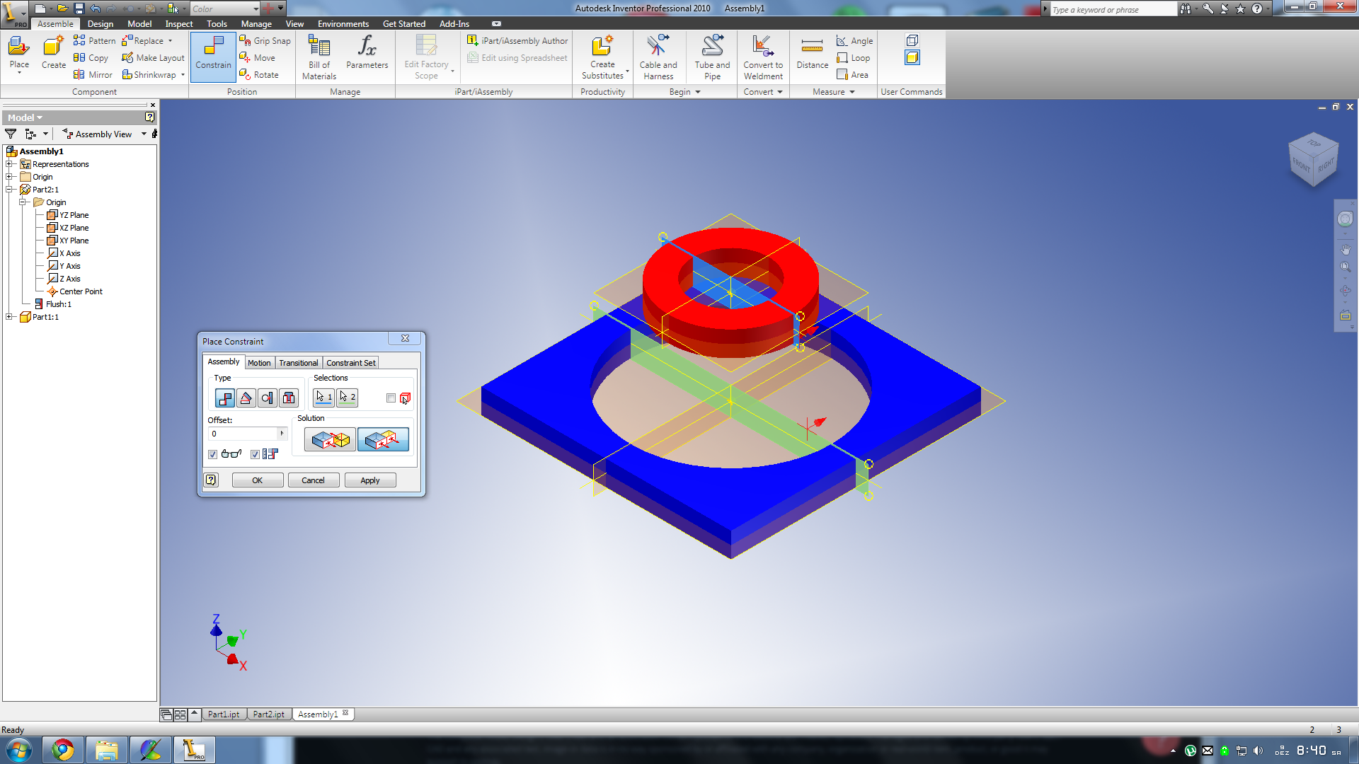 Hi, my question is about how to put one component in the middle of the another one in Autodesk Inventor?