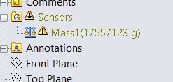 In order to sort it out every time I change something and rebuild the assembly I need to click "edit sensor" , I change nothing and just resave it and the weight comes back to the accurate number.