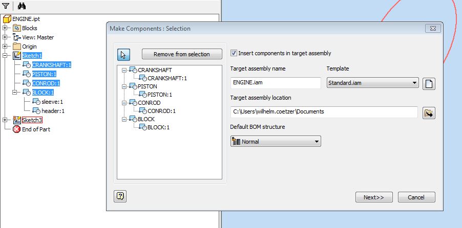Note that you can have blocks within blocks. This block will make a subassembly in the new assembly when you “make components”.