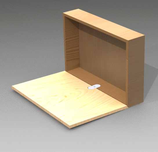 I start with a working hinge assembly with proper limit angles set. Then I mate to the furniture pieces. In my example I made one move using the Rotary Motor in a motion study. The piece with the motor is the door, oscillating the 90 degrees from open to shut. Be sure the rotary motor indicates proper opening action (see screenshot).