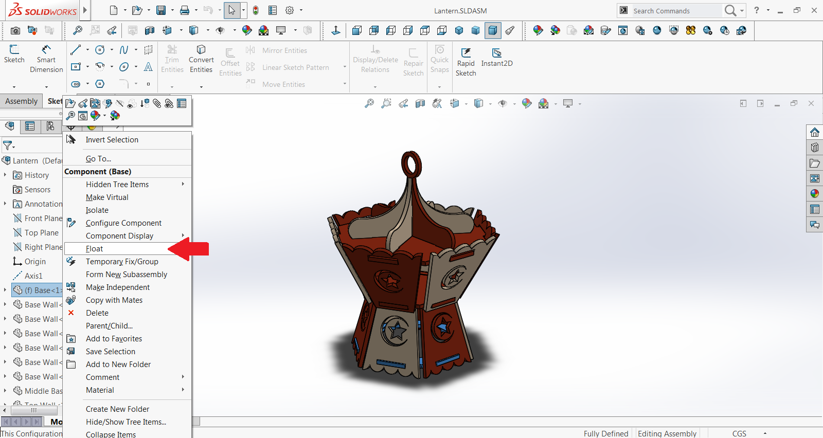 Now you can move it freely, or add a mate between its origin and the assembly's origin (distance mate).