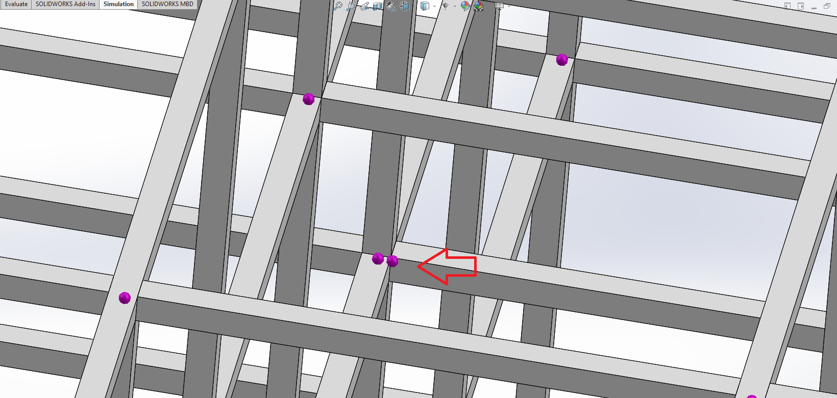 I`m trying to do a simulation on a hollow beam structure. When i enter simulation mode, i notice some of the beam joint having 2 purple joint dot ( as attached ). Can anybody explain to me why does this happen because the structure were created by using linear pattern of solid bodies, and majority of the joint were ok.