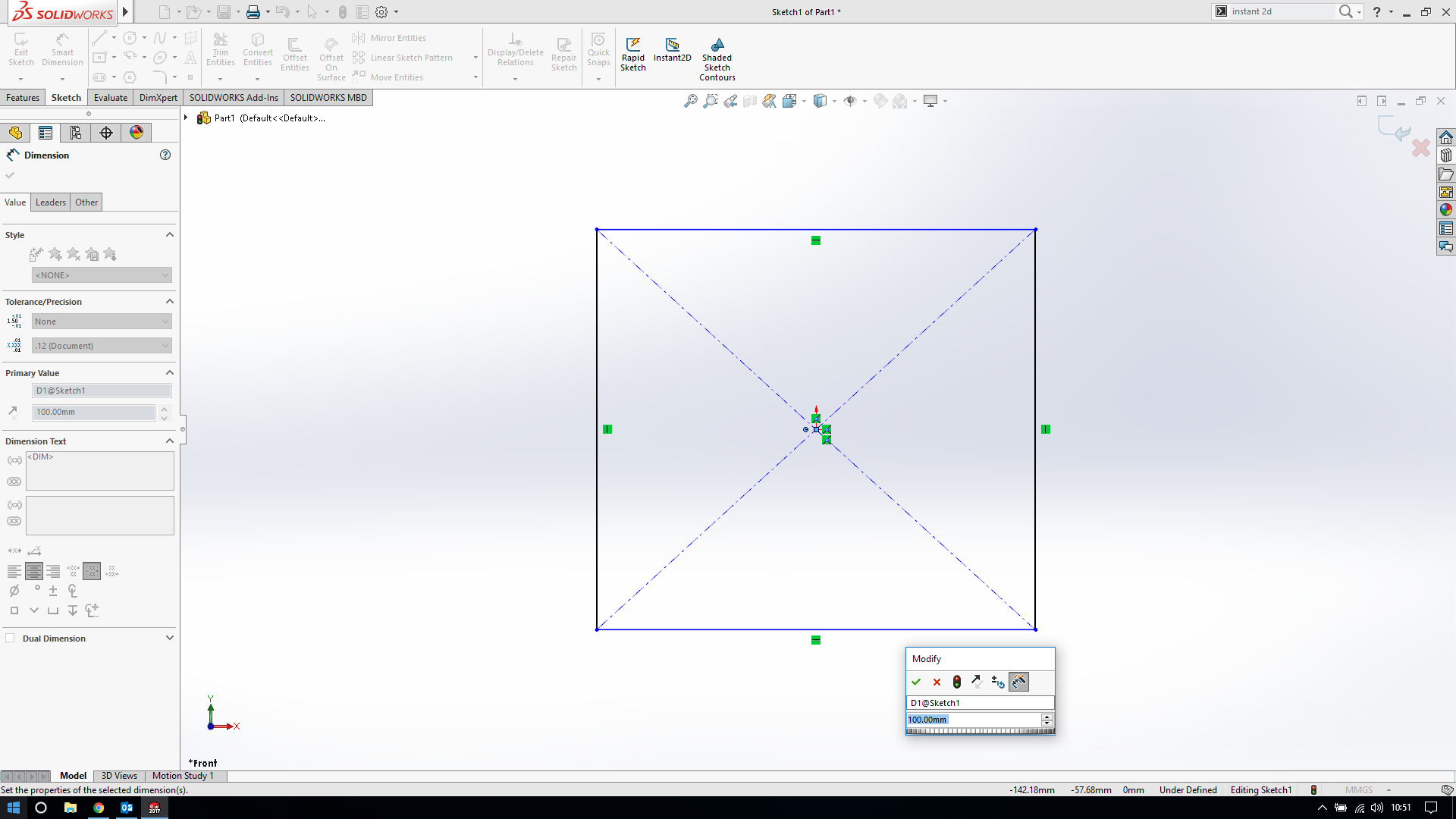 i have a major problem. When i start a new sketch and i start a add some dimensions, the first dimension i add isnt appear and i cant add another dimension. wherever i click in the drawing it appears the box of the first dimension i added. Look at the picture i added!