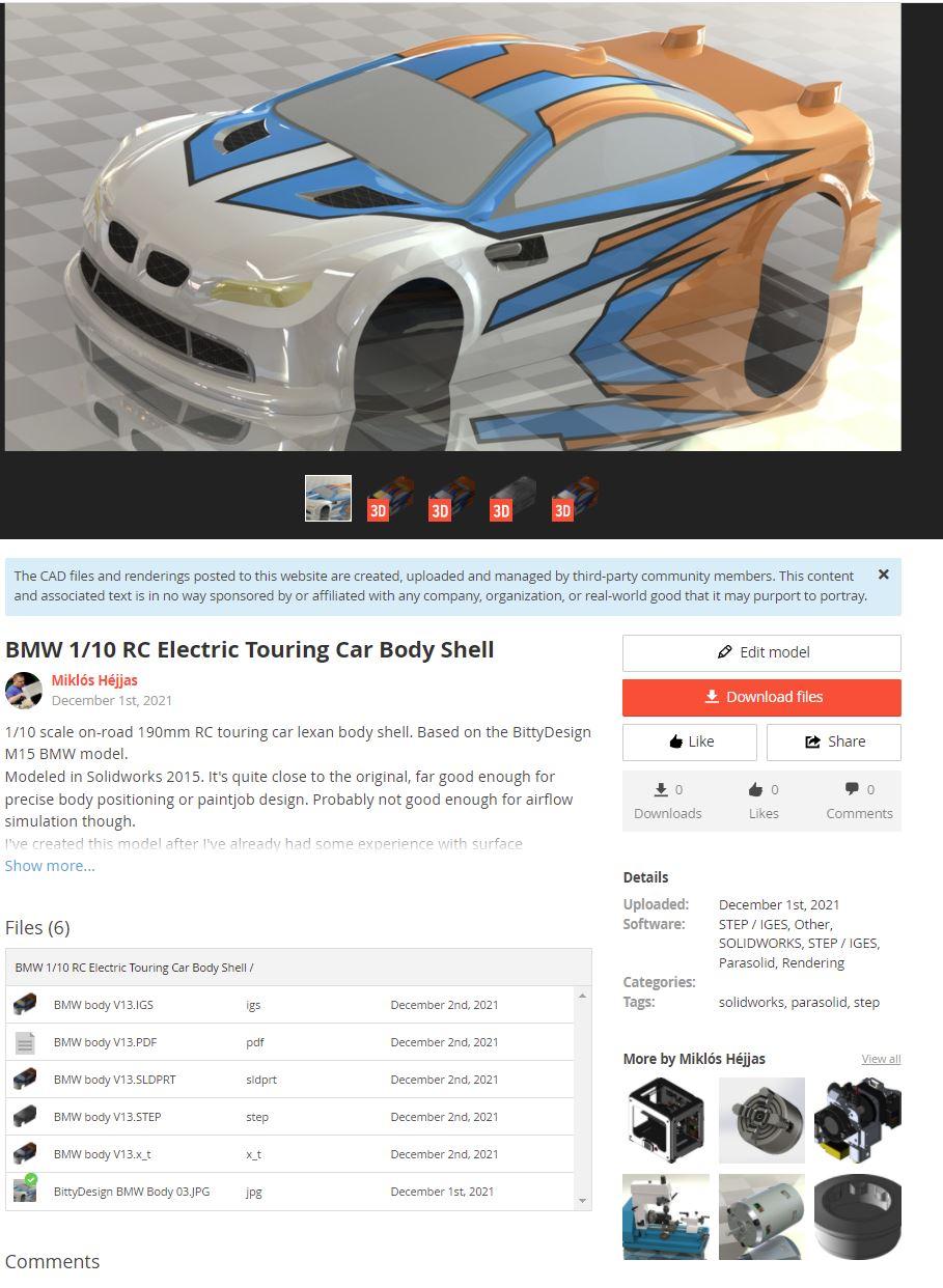 Uploading your own screenshots, or renderings to the Library allows you to control how the model is seen. Uploading a neutral file format like a Step file will allow more people to use your file(s) as well.