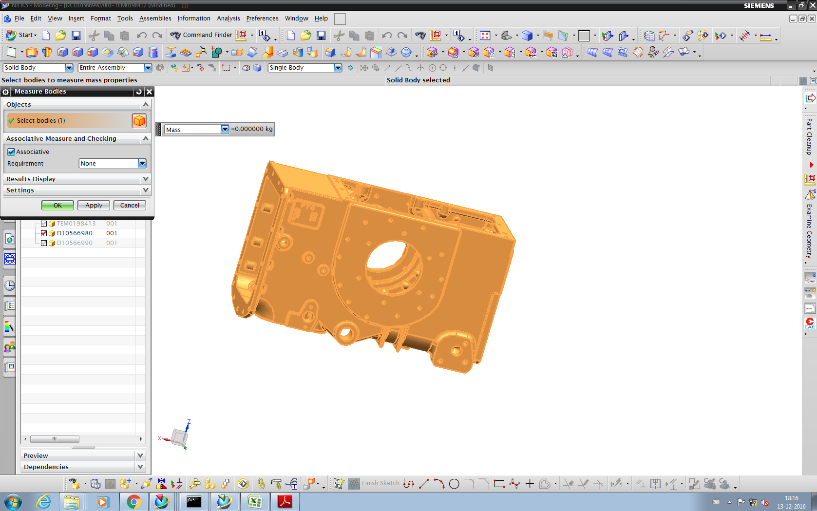 nx weight issue while calculating for casting parts Rajesh Biradar 13 Dec, 2016 12:47 PM nx weight issue while calculating for casting parts see the image Capture1.PNG 1 Answer mehfooz ansari Answered on 30 Jan, 2017 11:16 AM ADD DENSITY THEN MEASURE YOU WILL GET PROPPER WEIGHT https://www.youtube.com/watch?v=LyQgncD1UQ8