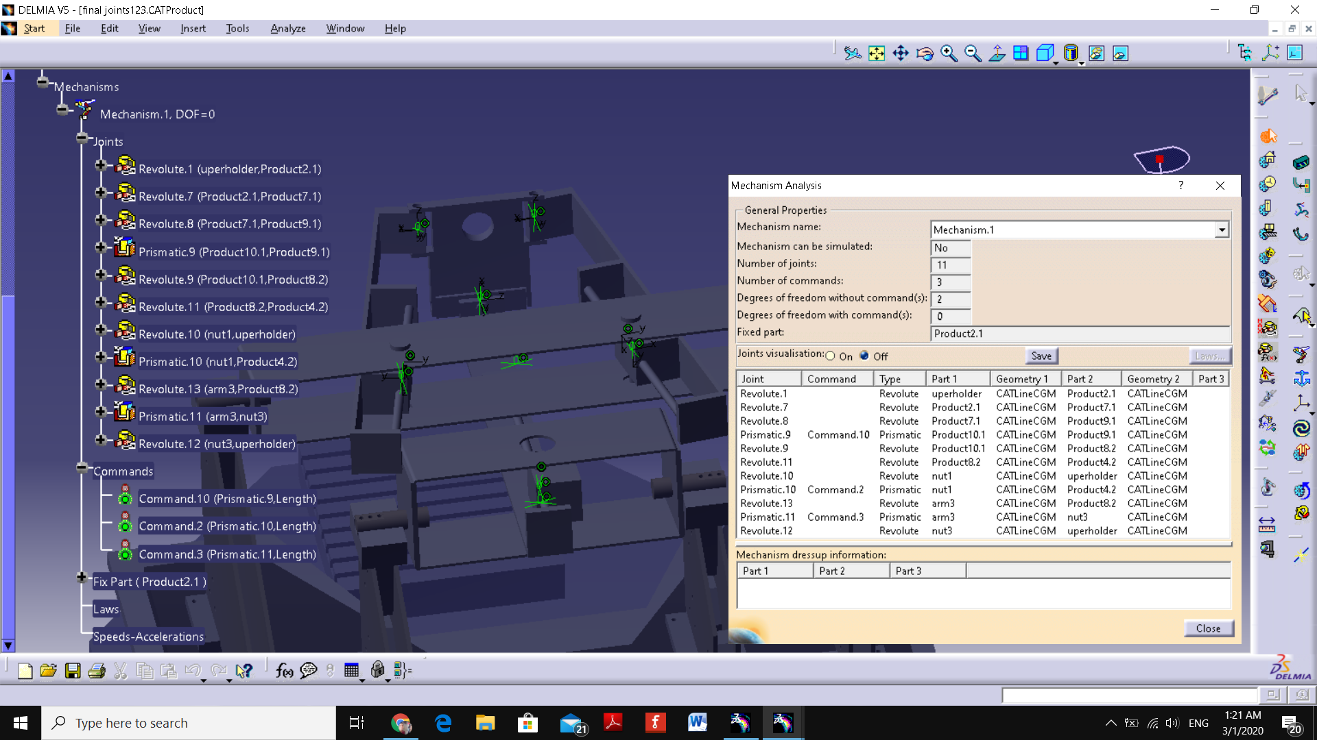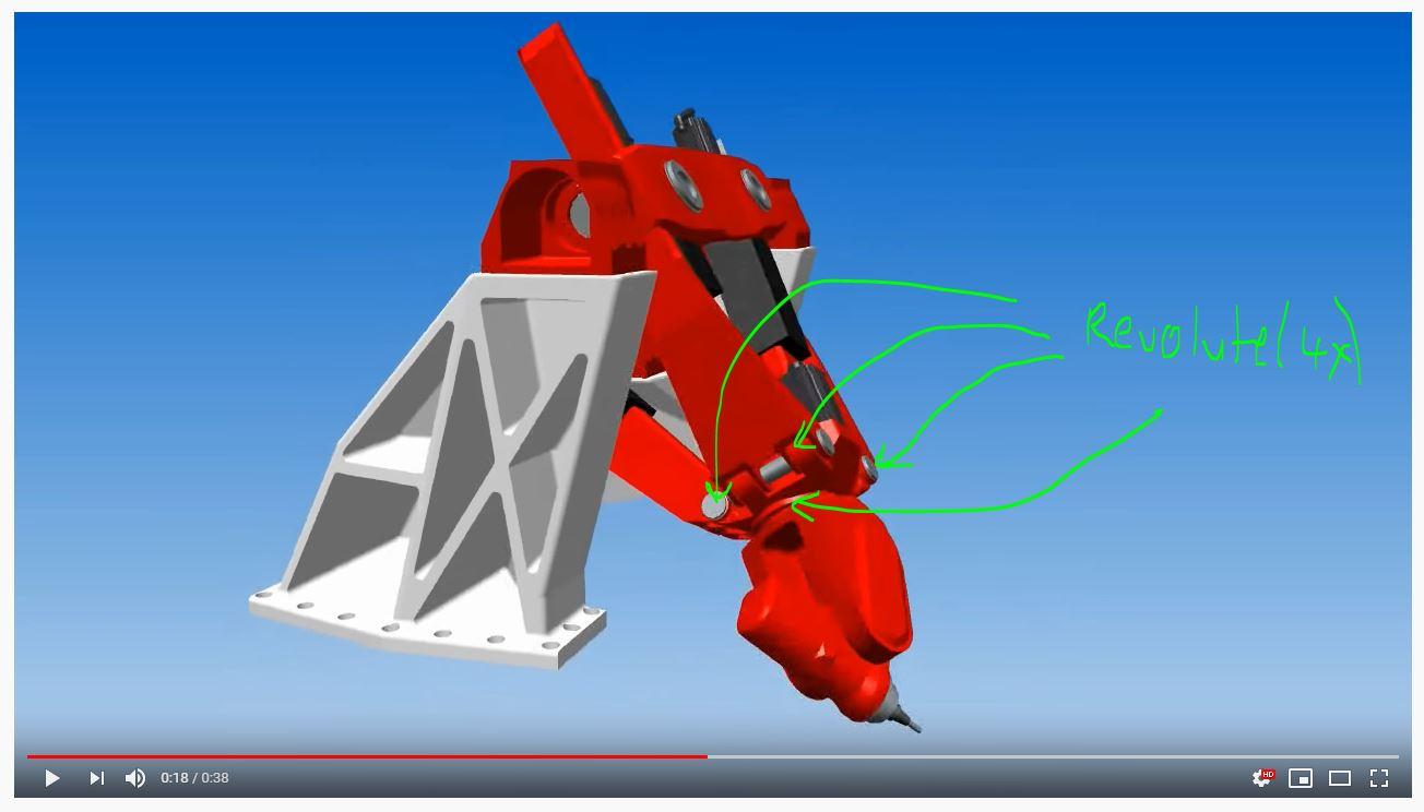 p Abdelrahma Ahmed 29 Feb, 2020 11:48 PM 6 bfdbdfb.png 3 Answers özgür kesebir Answered on 3 Mar, 2020 04:26 PM connections step1 connections_01.JPG özgür kesebir Answered on 3 Mar, 2020 04:26 PM connections step2 connections_02.JPG özgür kesebir Answered on 3 Mar, 2020 04:30 PM first way = 3x prismatic joint and 1 revolute can be length driven. second way = add point to the front drill and make a path with point and curve joint with lenght driven. (1 more part needed and can be hidden at the simulation)