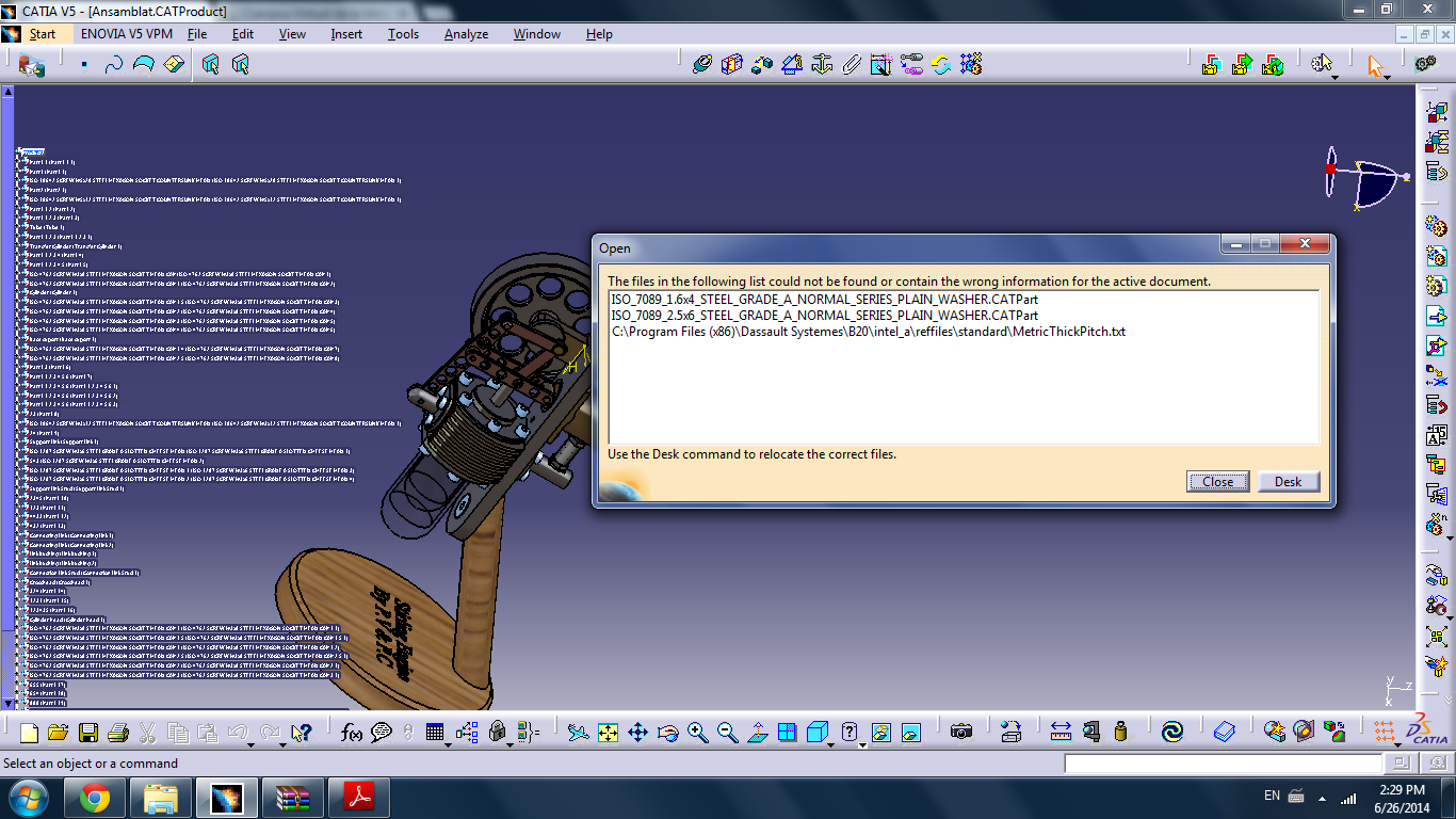 Please help me to solve this error Pintilei Vladut 26 Jun, 2014 12:34 PM I don`t know what to do. 2 Answers dave summ Answered on 27 Jun, 2014 03:41 AM Simple... Find the missing files Pintilei Vladut Answered on 26 Jun, 2014 12:37 PM This is a photo of error Catia v5 20.png