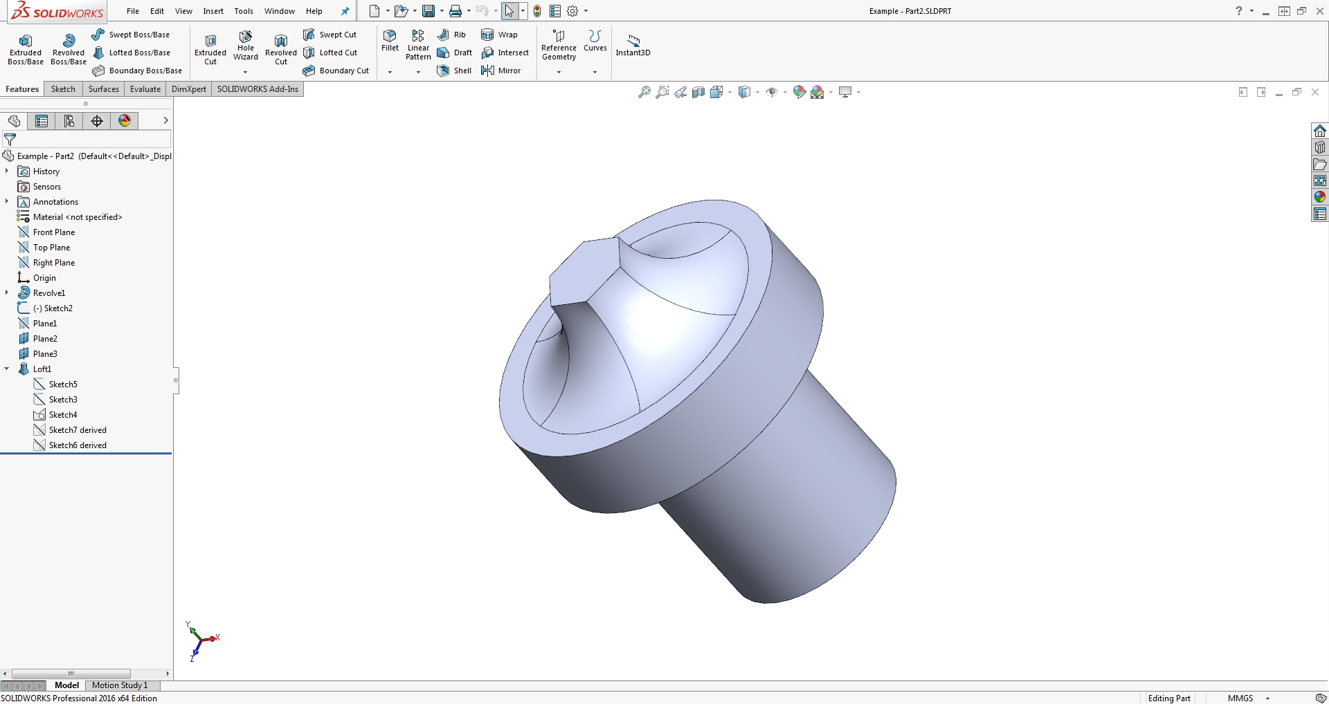 3. Sketch2 is too large. You are asking this loft to travel horizontally with no thickness, and then follow the guide curve up to the hexagon. It won't work. I've added a new sketch with a diameter that connects to the guide curve. The result is the same.