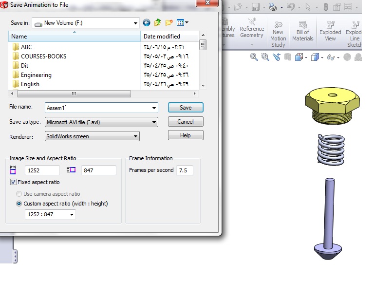 Problem in recording animation Ahmd 11 Mar, 2014 08:46 PM I have a problem after I Draw and I make expolded view when but don't saves avi format video and hange the device and needed press ESC 1.jpg 2.jpg 1 Answer Deepak Gupta Answered on 15 Mar, 2014 05:02 PM Can you try to make a quick motion/animation of the exploded view using the motion manager. And then save AVI from there.