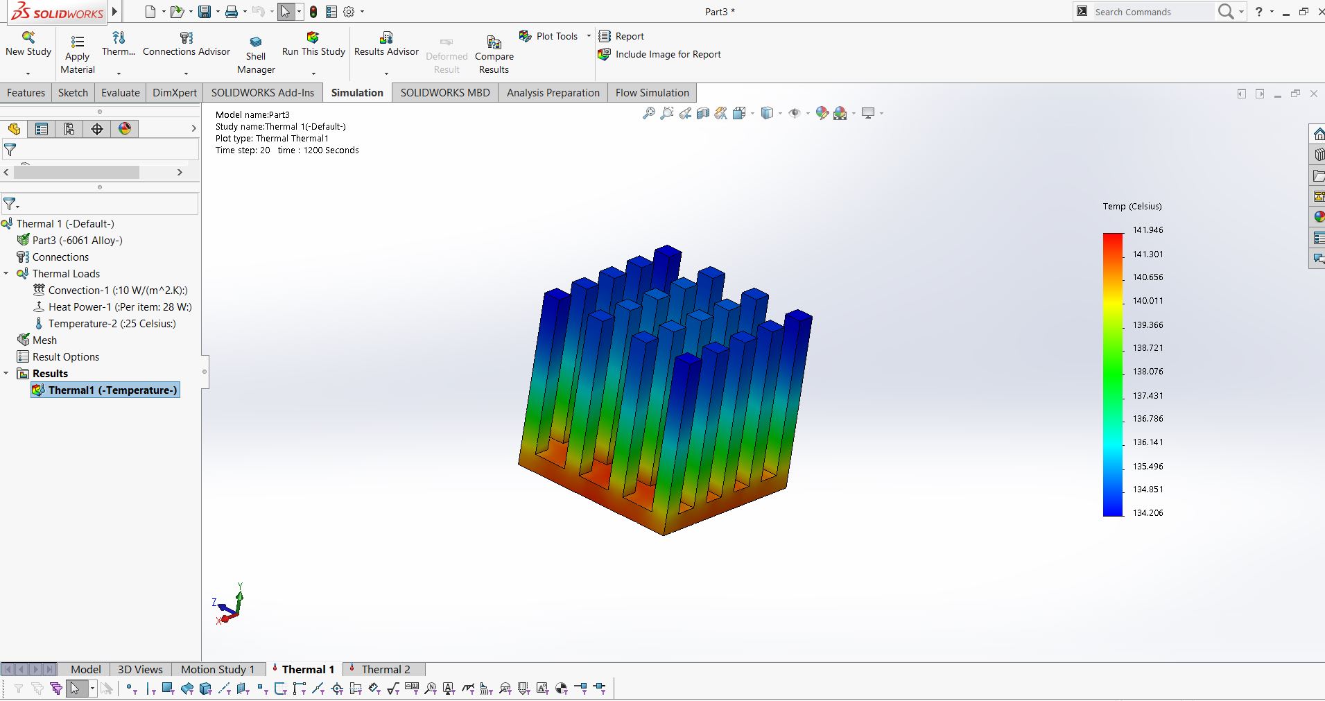 hi im doing this youtube tutorial on thermal analysis of a heatsink. and for some reason i get different results from the video.