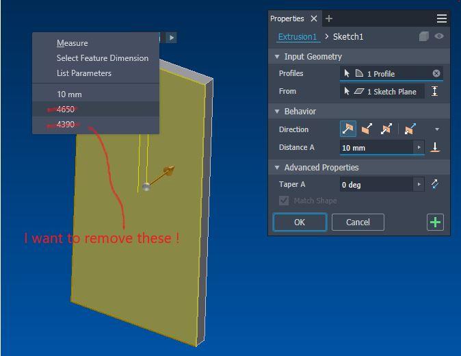 Is it possible or better to say how we can remove old parameters value from properties dialog box I want to keep only those that I want them to be visible