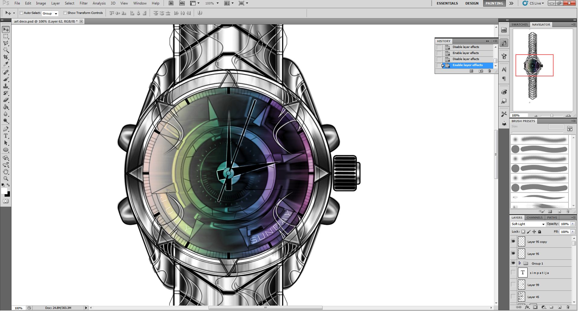 A lot of people were asking me how did I do the watches in photoshop so I have some time will make a tutorial. Now chrome is a little tricky to render. What you are trying to do is render reflections and reflections act very differently depending on the type of surface where the light is coming from etc. Now there is no right or wrong way to render chrome and my method is just one way you can achieve realistic chrome. Took some time to figure out but I think this is a very effective and realistic way to create chrome chrome like materials by brushes.
