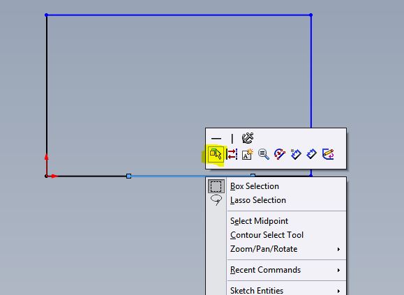 Alternatively, if the buried entity is in the same sketch, you may be able to draw a selection window (left to right) around the shorter sketch line to select it from 'behind' the longer line on top of it.