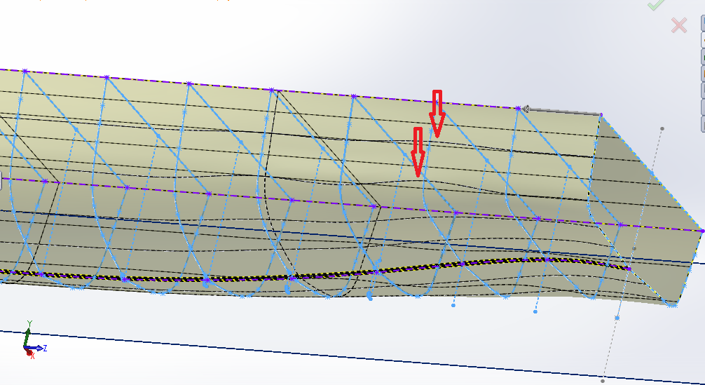 Hi there recently i am workin upon a ship hull project and i am facing a problem with the loft feature and specifically some kind of anomaly. Dont have in mind what is the fault. Possibly need more guide lines??