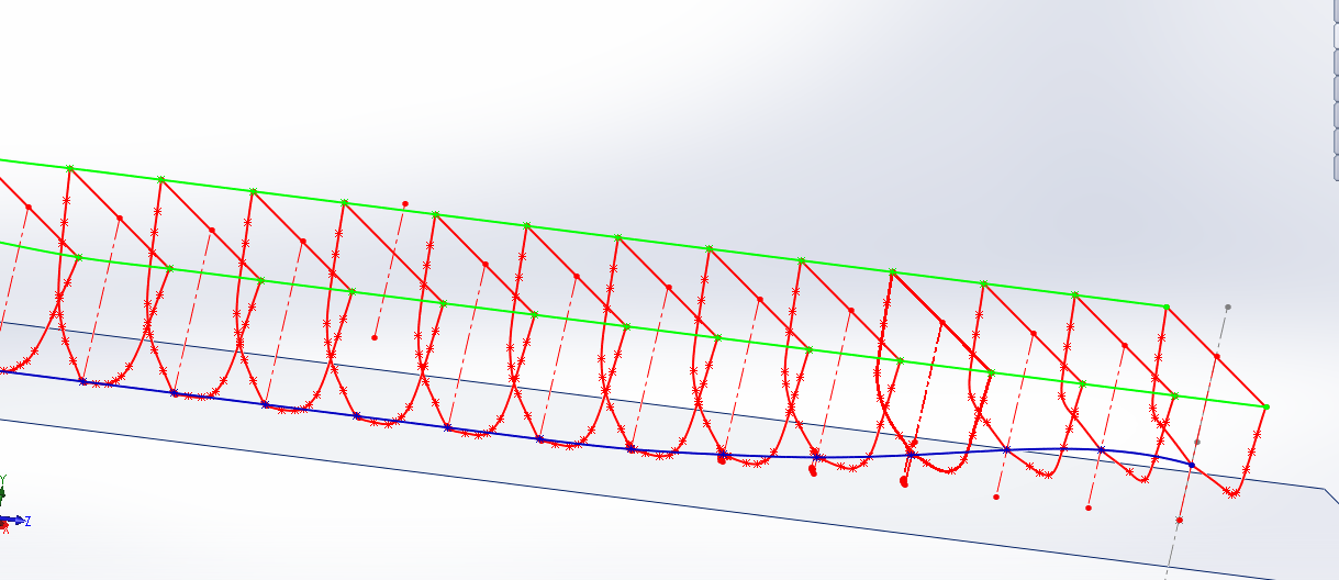 Also, in your cross-sections, if part of the profile is a straight line, you do not want to create them as part of splines-they would never work as a straight segment.