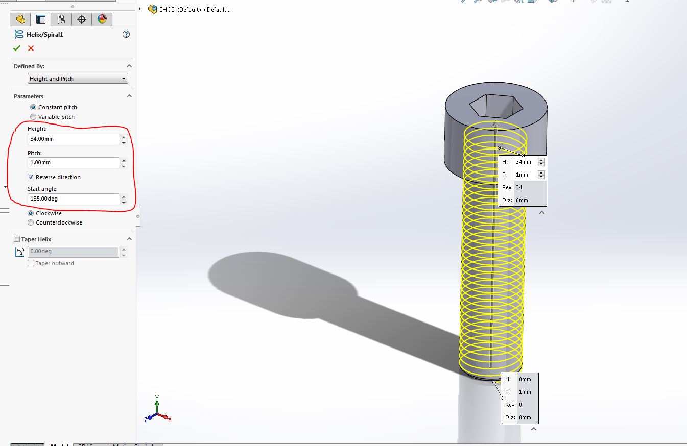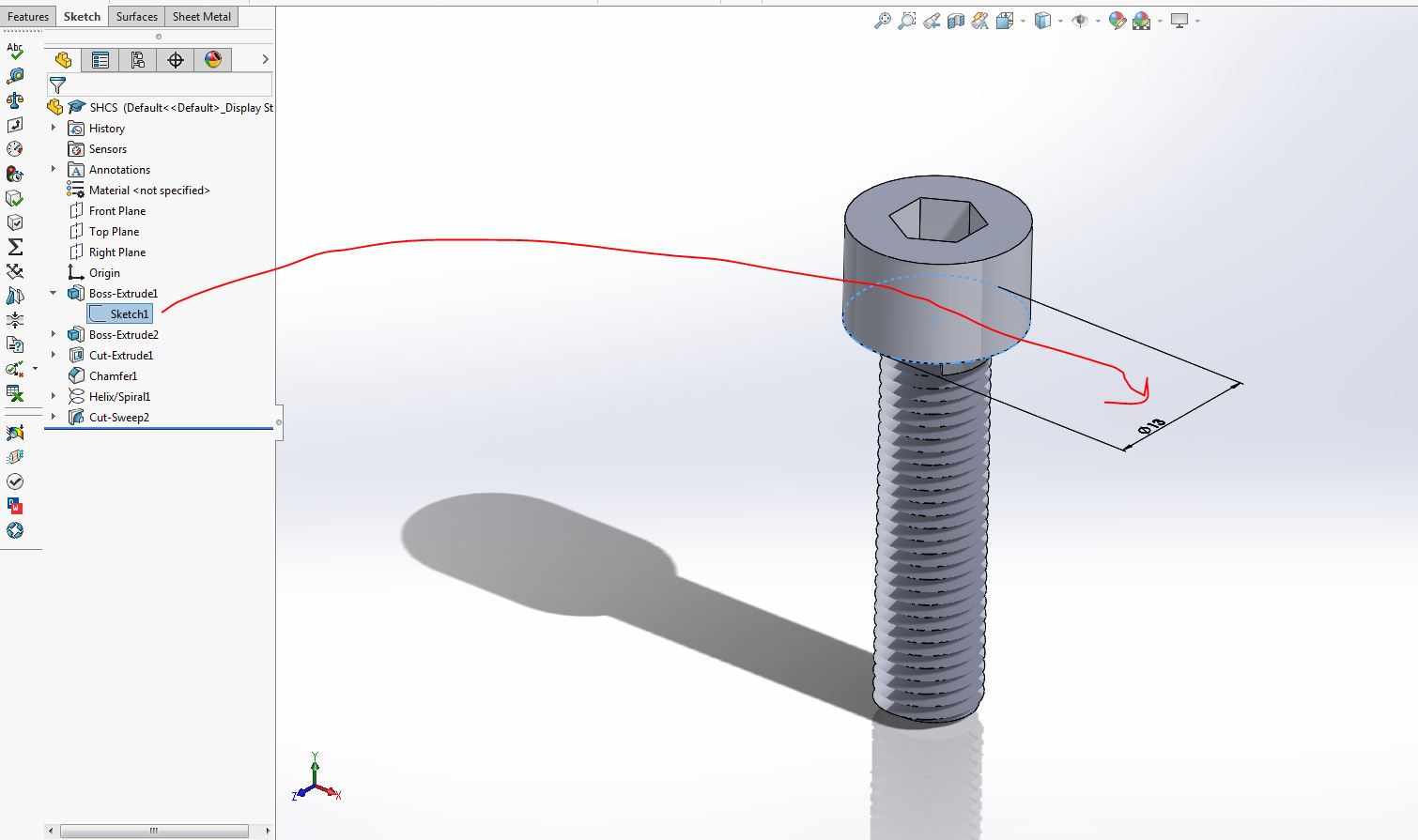 I'm not sure where to start on assembling a 10-32 x .375 Socket Head Cap Screw, attached is an assembly I found. How would I be able to change the dimensions or make one from scratch?