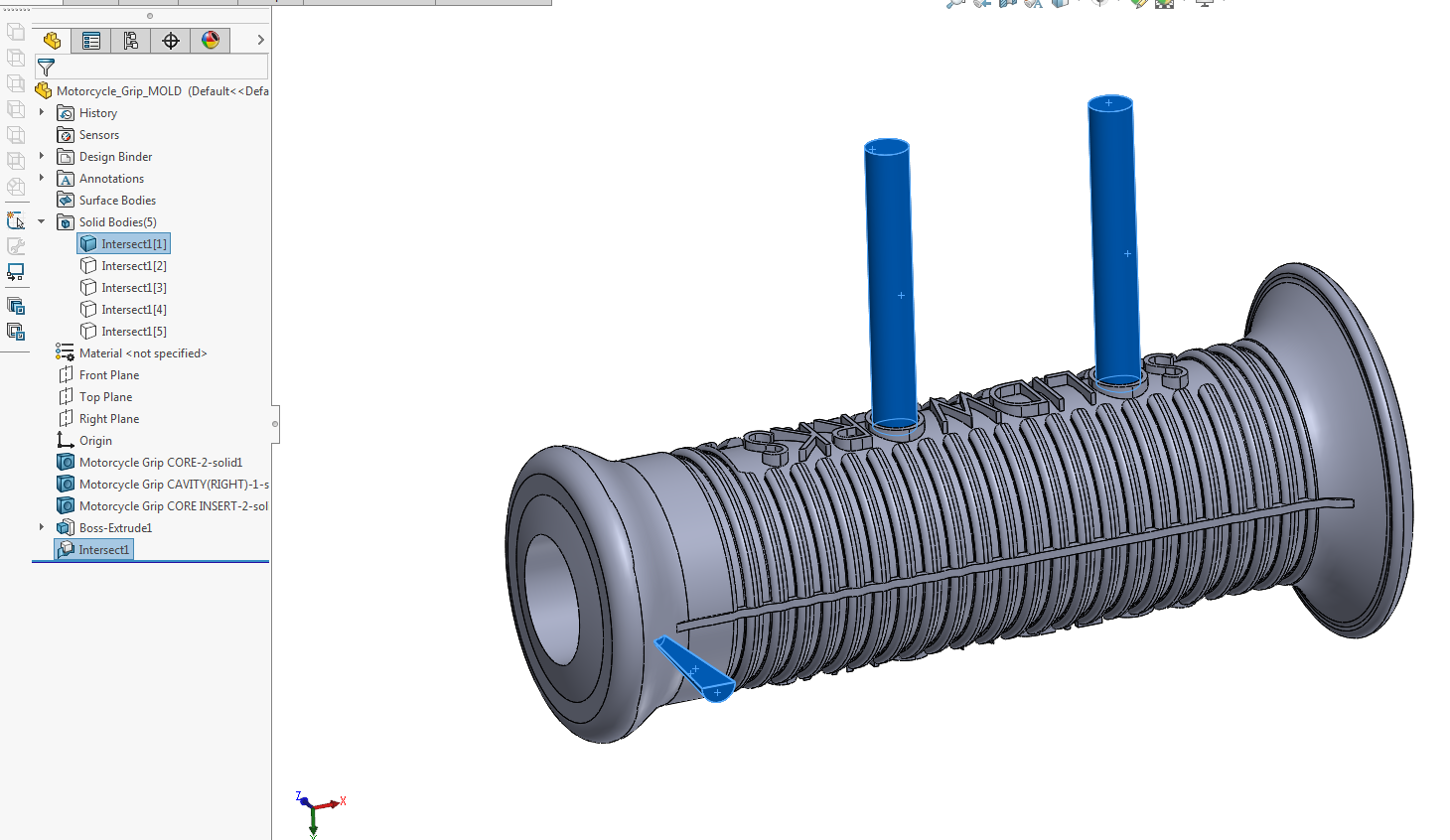 I attached the question here. First open the doc file to see the question and later use motorcycle_grip_mold.zip file to solve the problem (Minimum solidWorks 2015 needed to open this file). I will really appreciate if anyone trying to help me regarding this.