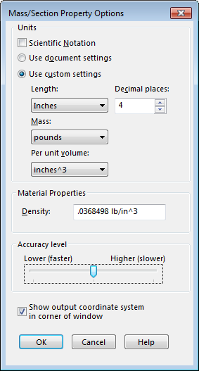 But, the problem states the material has a shrink rate of .5% The shrink should only affect the part volume, not the mass, but you could play it safe and apply a scale factor of .5% (Insert - Feature - Scale) to the part and remeasure the mass. Provide this answer as a second answer and state you were unsure of it affecting the mass. Teachers (sometimes) love it when students ask questions, and consider the problem.