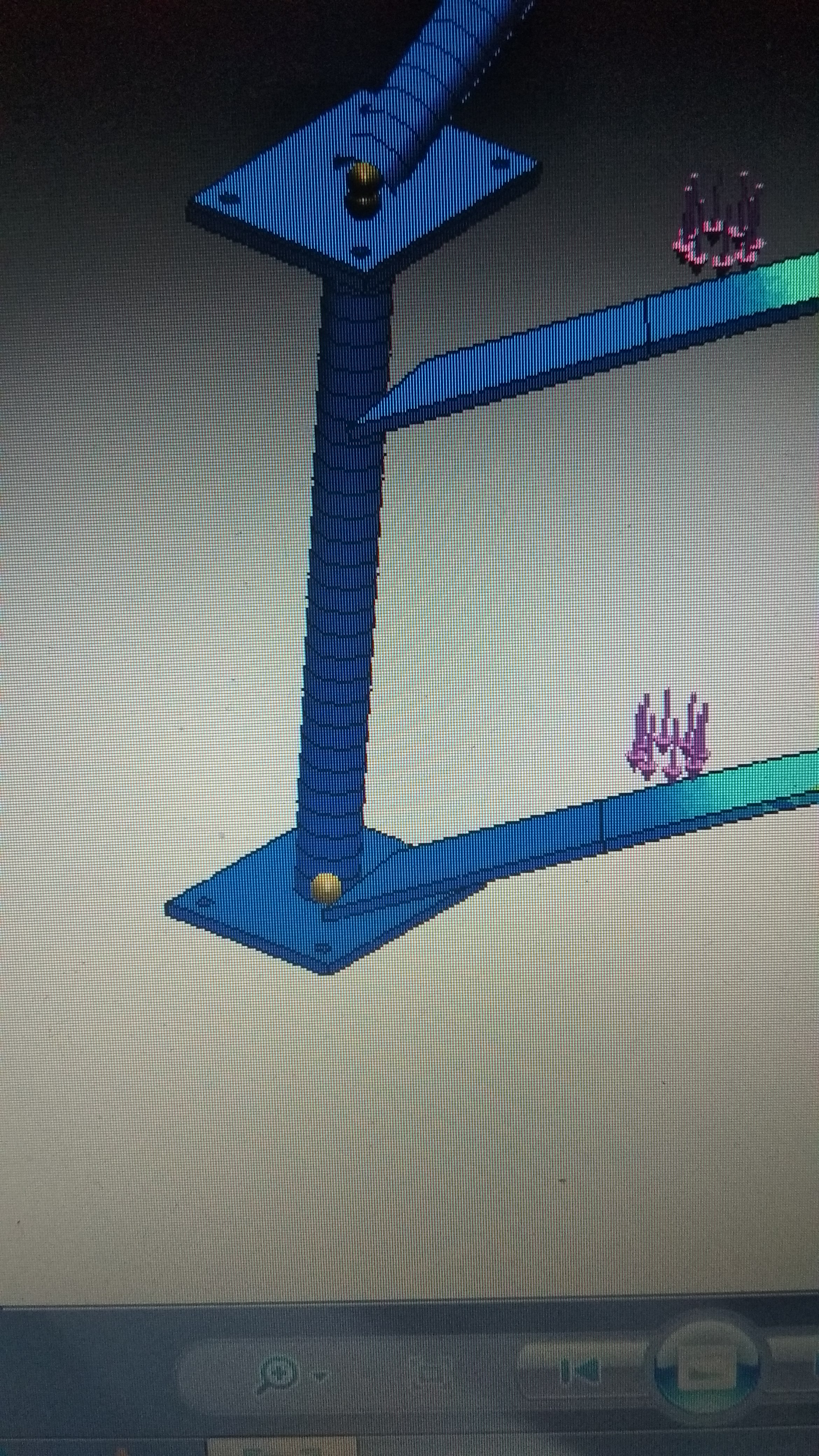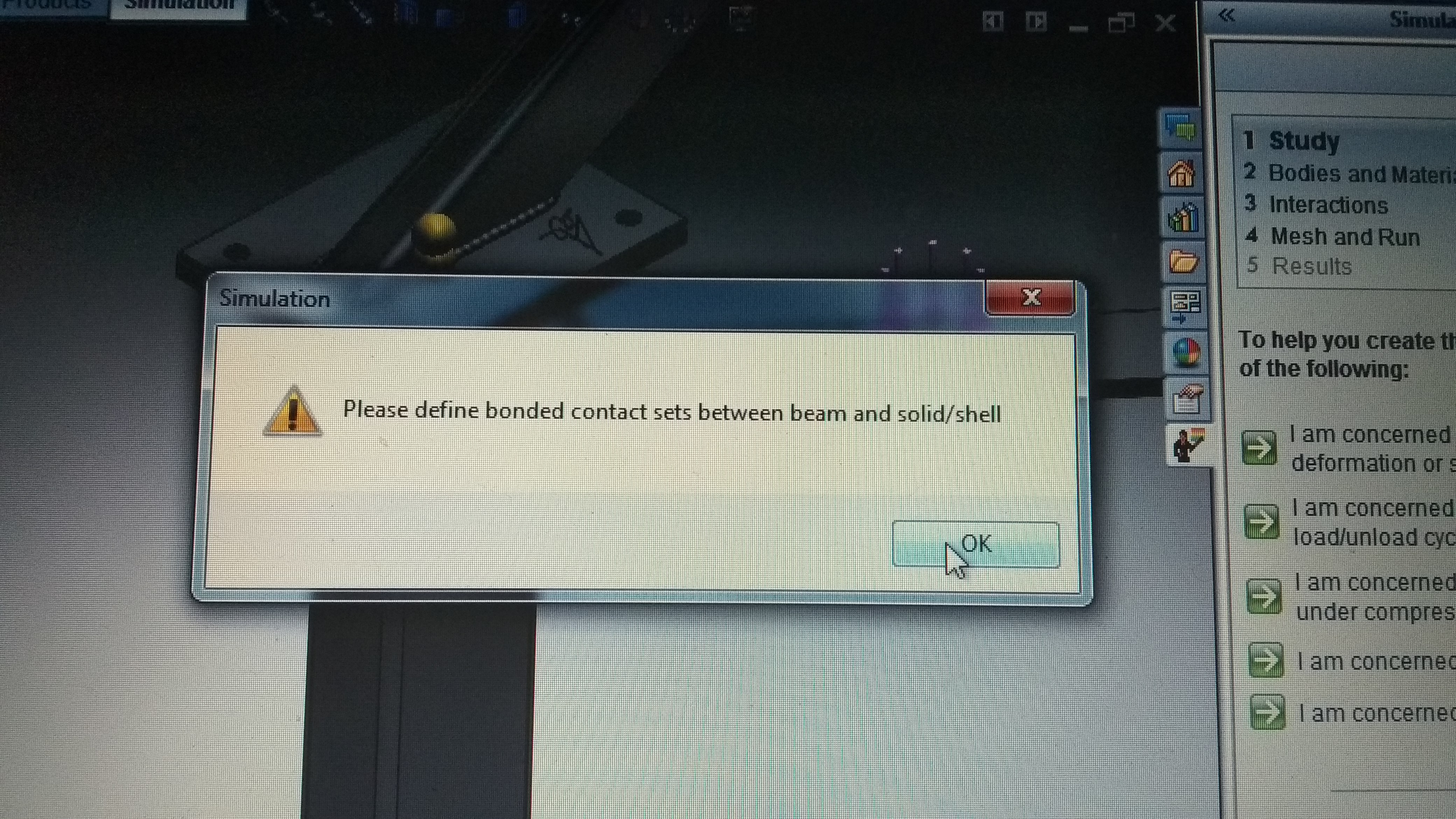I am facing a problem with my construction simulation study. The construction i made consists of solids and a central beam. When i run the simulation study, i believe that something is going wrong with deformation.