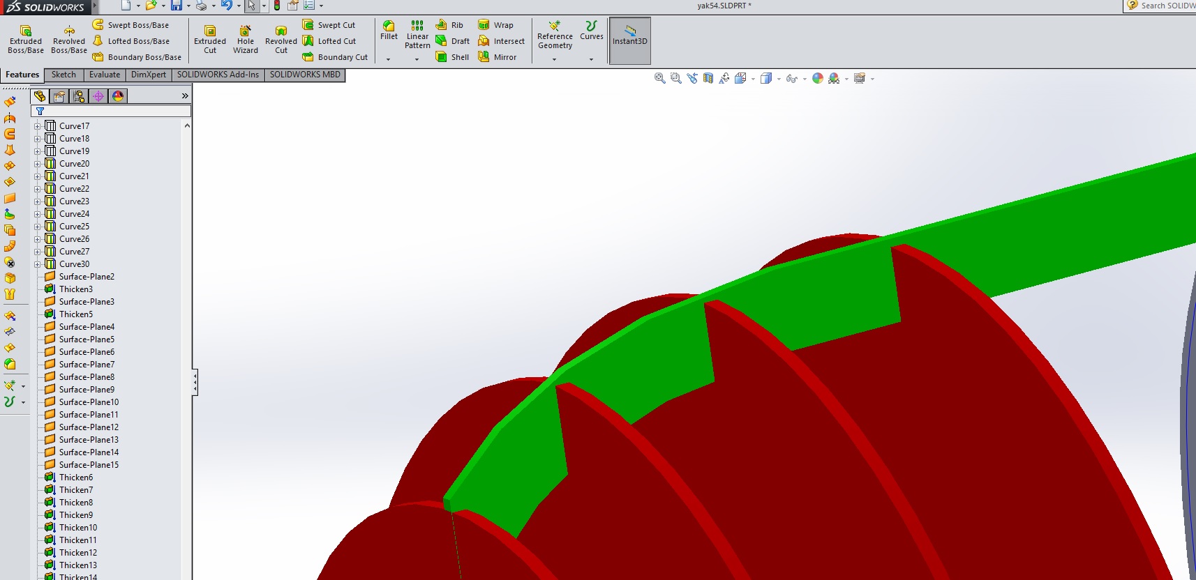 I want to cut from the red profiles, the intersection between the red profiles and the green profile.