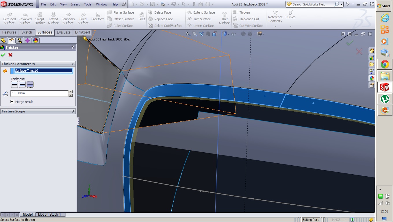 Surfaces thicken problems in Solidworks