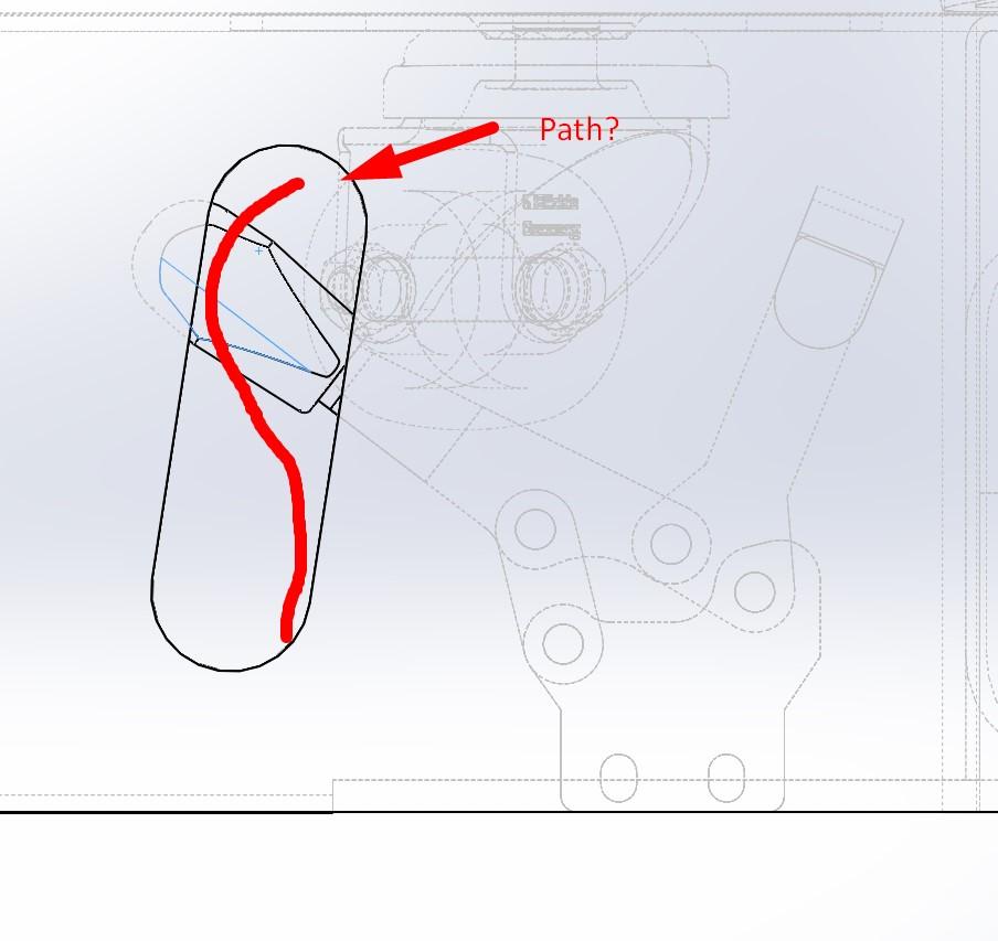The path is generally close to an arc. While not exactly an arc, for purposes of clearance an arc could be used.