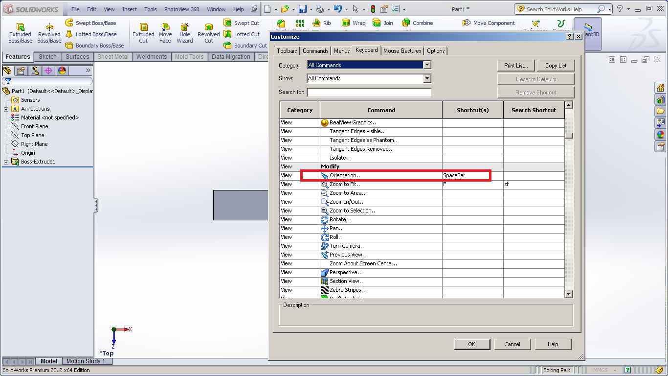 Tutorial: change the view from view to view TOP RIGHT in SolidWorks with a command view orientation