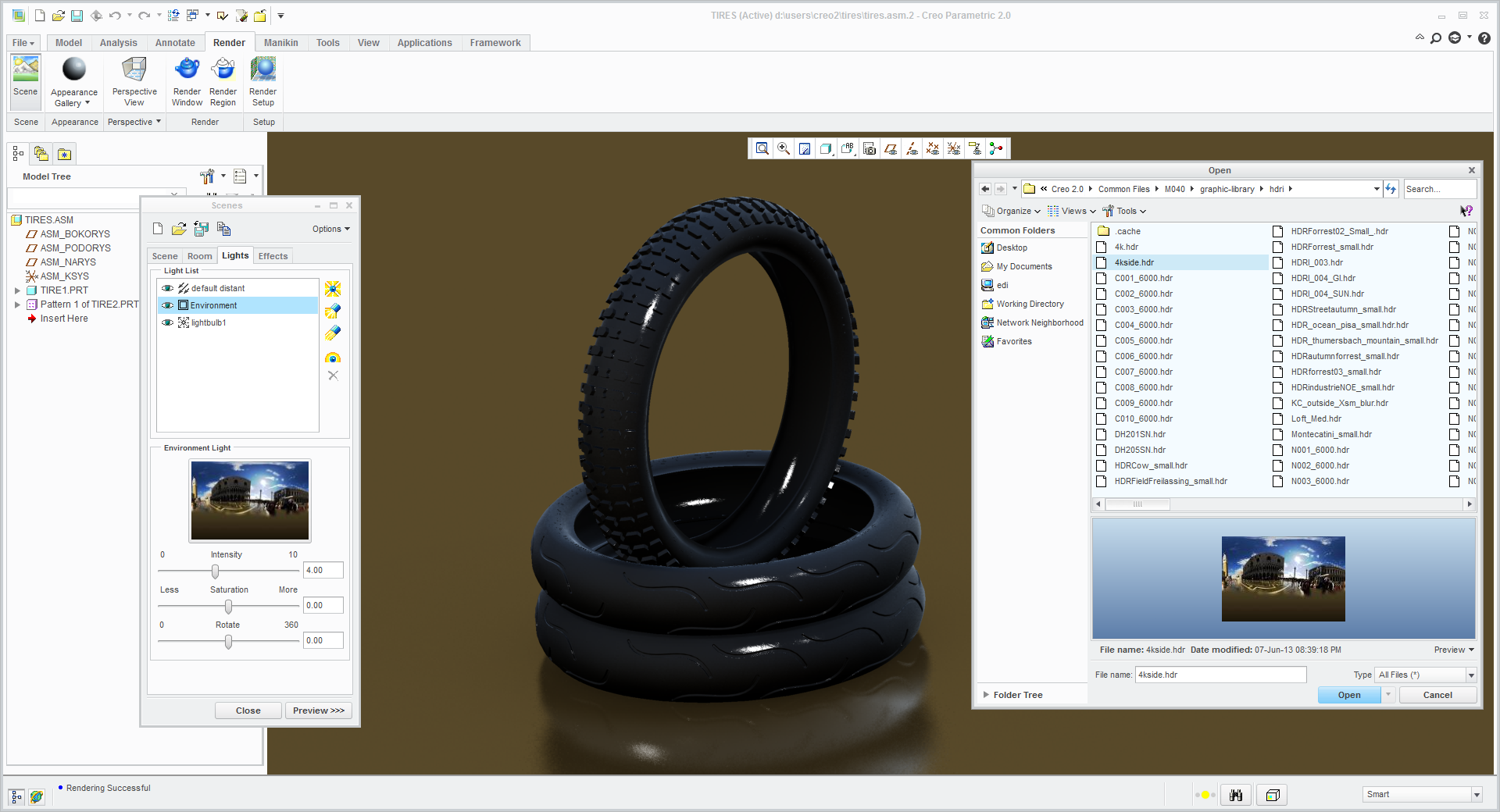 Here is the answer: create your custom HDR library from any pictures and use it for your Rendering in any CAD software - for example PTC Creo Parametric :)