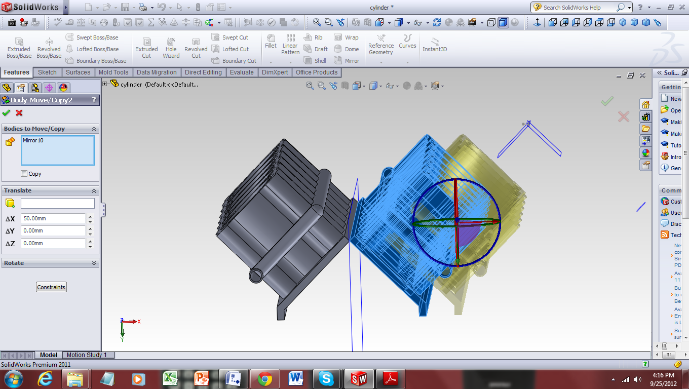I don't know how far these cylinders should be apart from eachother. Also I dont know if the method I used is correct. mirror the original body and use move/copy command. Need your help buddies. thank you"