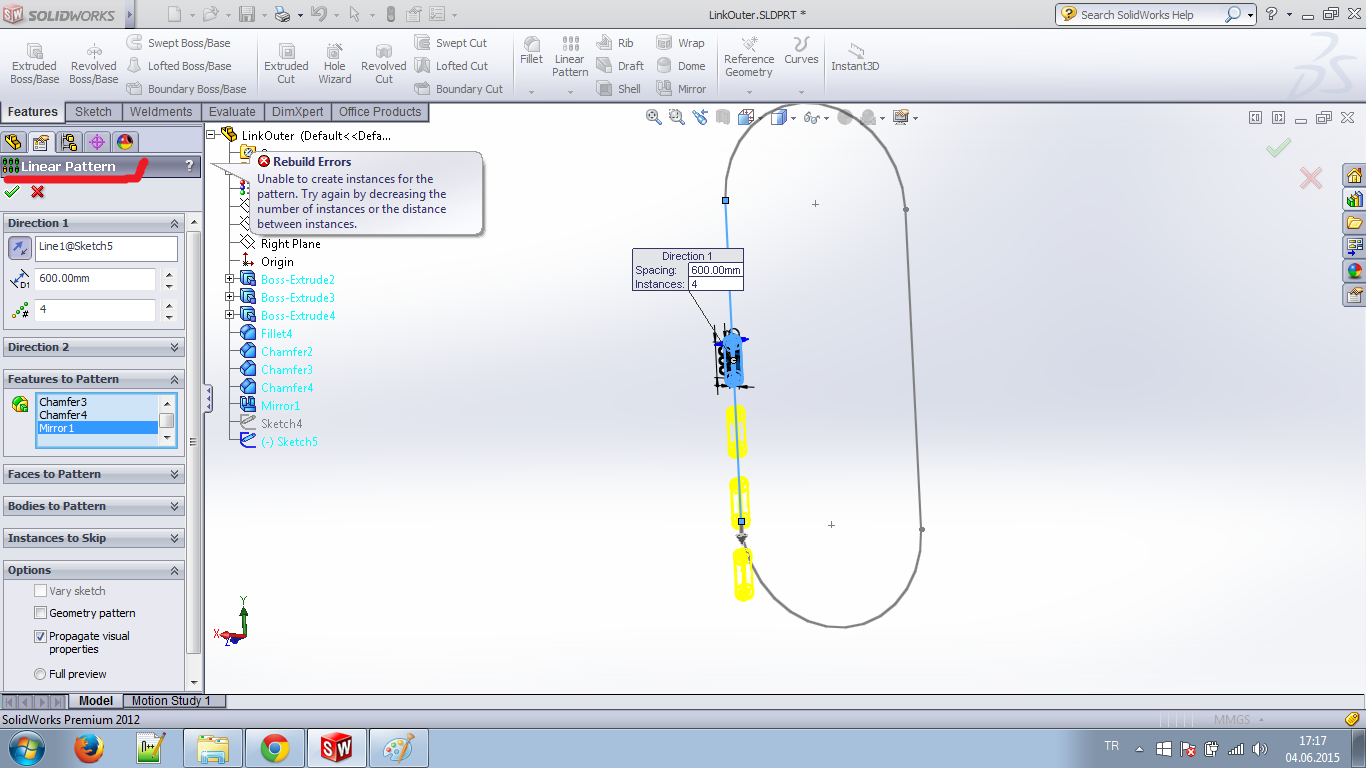 "Unable to create instances for the pattern. Try again by decreasing number of instances or the distance between instances".