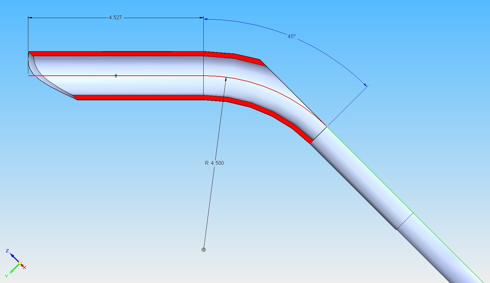 Draw a sketch on the cut plane, draw a lines or arcs passing through the center of the pipe (Figure B), put dimensions on the line and arc segments.
